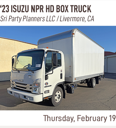 Tuesday February 17 Government Auction, Wednesday February 18 Ag Equipment Auction, Thursday February 19 Truck and Trailer Auction, Wednesday February 25 Vehicles and Equipment Auction, Thursday February 26 Construction Equipment Auction, Tuesday March 03 Government Auction, Wednesday March 04 Ag Equipment Auction, Thursday March 05 Truck and Trailer Auction, Wednesday March 11 Vehicles and Equipment Auction, Thursday March 12 Construction Equipment Auction, Tuesday March 17 Government Auction, Wednesday March 18 Ag Equipment Auction, Thursday March 19 Truck and Trailer Auction