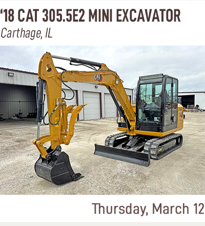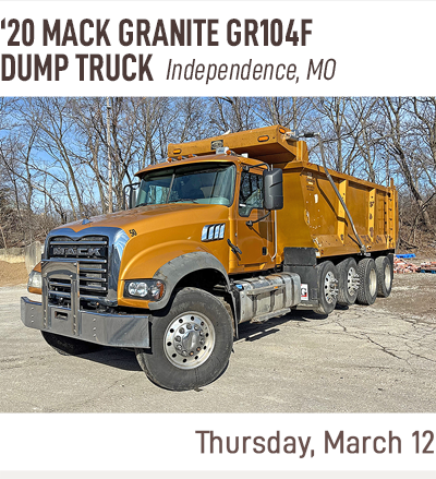 Wednesday February 11 Vehicles and Equipment Auction, Thursday February 12 Construction Equipment Auction, Tuesday February 17 Government Auction, Wednesday February 18 Ag Equipment Auction, Thursday February 19 Truck and Trailer Auction, Wednesday February 25 Vehicles and Equipment Auction, Thursday February 26 Construction Equipment Auction, Tuesday March 03 Government Auction, Wednesday March 04 Ag Equipment Auction, Thursday March 05 Truck and Trailer Auction, Wednesday March 11 Vehicles and Equipment Auction, Thursday March 12 Construction Equipment Auction, Tuesday March 17 Government Auction, Wednesday March 18 Ag Equipment Auction, Thursday March 19 Truck and Trailer Auction
