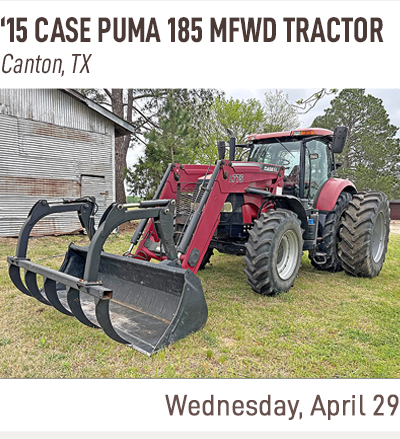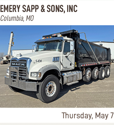 SOLD! April 28 Government Auction, Wednesday April 29 Ag Equipment Auction, Thursday April 30 Truck and Trailer Auction, Wednesday May 06 Vehicles and Equipment Auction, Thursday May 07 Construction Equipment Auction, Tuesday May 12 Government Auction, Wednesday May 13 Ag Equipment Auction, Thursday May 14 Truck and Trailer Auction, Wednesday May 20 Vehicles and Equipment Auction, Thursday May 21 Construction Equipment Auction, Tuesday May 26 Government Auction, Wednesday May 27 Ag Equipment Auction, Thursday May 28 Truck and Trailer Auction