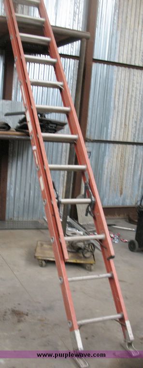 Fiberglass 20' ladder. Topeka Piping. Topeka, KS Condition = 3 Sold as pictured, item has not been tested. We have made no attempt to evaluate this merchandise other than picturing it.