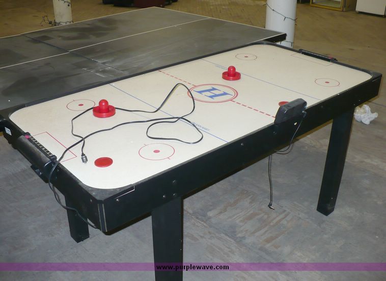 Purple Wave is selling a used Sporting Goods in Kansas. This item is a with the following: Air Hockey Table. Fan works. Includes two paddles and a puck. 34" x 68". Ping Pong table. Includes 6 paddles and 1 net. 60" x 108". Full Moon Productions. Kansas City, MOCondition = 3Sold as pictured, item has not been tested. We have made no attempt to evaluate this merchandise other than picturing it.