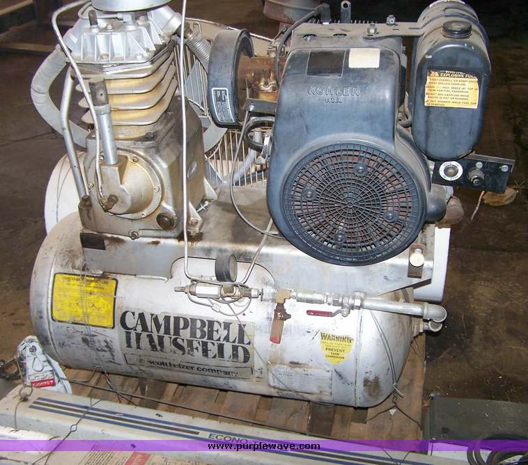 Purple Wave is selling a used Tools in Kansas. This item is a with the following: Campbell Hausfeld air compressor. 12hp. Kohler engine. 30 gallon capacity. Works. 400 Dennis. Sublette, Ks. 67877Condition = 3Sold as pictured, item has not been tested. We have made no attempt to evaluate this merchandise other than picturing it.