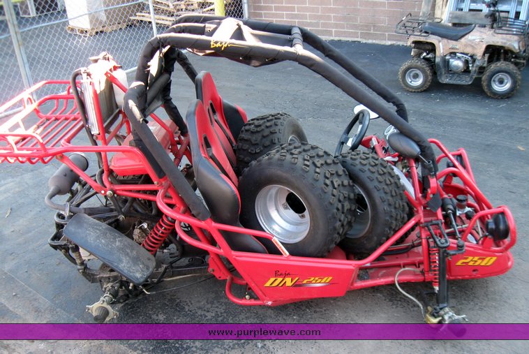 Purple Wave is selling a used ATV in Missouri. This item is a with the following: Baja DN-250 go-kart. 244cc liquid cooled four cycle engine. Electric start. Automatic CVT drive. Off-road tires. Double A-arm front suspensions. Hydraulic front braking. Cosmetic damage. missing rear hub all lugnuts. as pictured no exchanges or refunds. Model DN250. LBXGDNHB. Purple Wave, Inc.. Lee's Summit, MOCondition = 3Sold as pictured, item has not been tested. We have made no attempt to evaluate this merchandise other than picturing it.