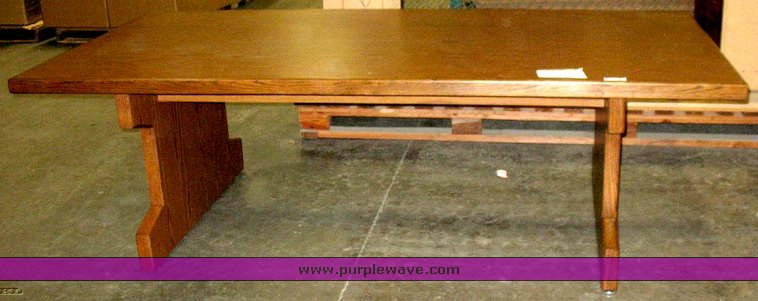 Hearth oak conference table. · 48"W x 96"L x 30"T. Kansas Correctional Industries. 1100 E Avenue G, Hutchinson, KS Condition = 3 Sold as described, item has not been tested. We have made no attempt to evaluate this merchandise other than picturing it.