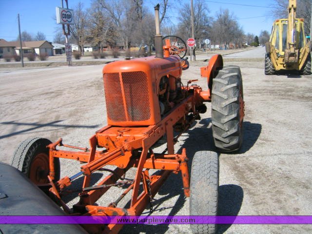 Purple Wave is selling a used Tractor in Kansas. This item is a 1955 Allis Chalmers WD45 broom tractor with the following: Four cylinder gasoline engine, Four speed transmission, Street broom attachment, PTO, Single hydraulics, 12 volt electrical system, 14:9-28 rear tires, No cracks or breaks, Metal seat, Serial 205706