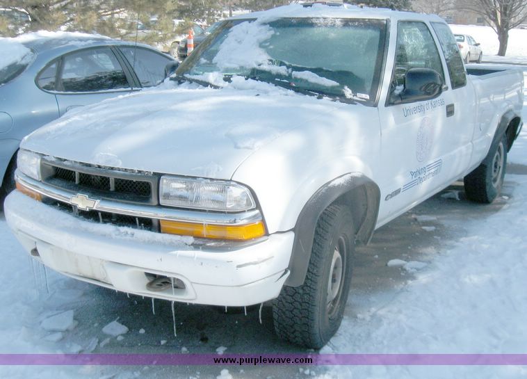 1998 Chevrolet S10. 89,862 miles on odometer, 4.3L V6 FI, Automatic transmission, AM/FM radio, Air conditioning and heat, Manual windows and locks, Bed liner, Tow hooks, Front end damage, Broken tie rod, Bent frame. Salvage title. See Seller's disclosure for more information. 1GCDT19X2W8147851. Kansas University Facilities Operation. 1505 Westbrook. Lawrence, KS 66045