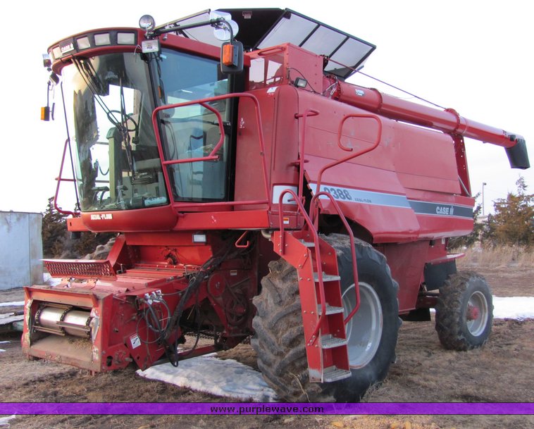 Purple Wave is selling a used Combine in Texas. This item is a 1998 Case 2388 axial-flow combine with the following: 2,561 engine hours, 2,014 separator hours, Straw chopper, Case IH yield rotary technology, 4' auger extensions allows for 36' header, Bin extensions, AFS field monitor, New ladder will be installed prior to sale, Left front cowling will be replaced prior to sale, Vanes and feeder house chains replaced approx. 1,000 acres ago, Round hole grates, No teeth, Model 2388J48BJ, Serial JJC0197248