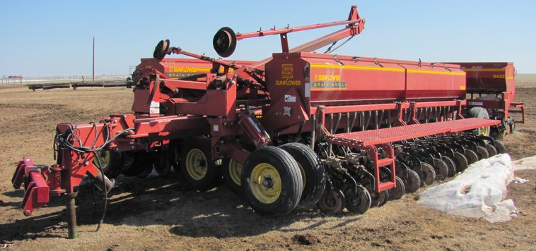 This Sunflower 9432 40' double disc drill will sell to the highest bidder regardless of price.