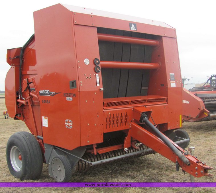 Purple Wave is selling a used Round Baler in Kansas. This item is a 2007 AGCO 5456A round baler with the following: 6' bale capacity, 540 PTO, Mesh wrap or string capable, 14L-16.1SL tires, Bale monitor, Electronic display, Bale count display, Automatic tie function, Pickup height control, Serial H525174