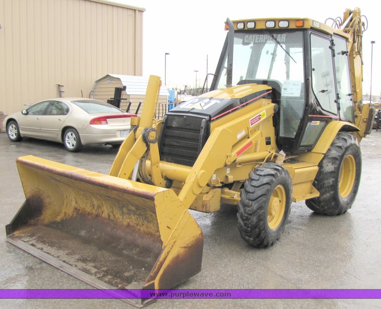 Purple Wave is selling a used Tractor Loader Backhoe in Kansas. This item is a 2003 Caterpillar 420D loader backhoe with the following: 1452 hours on meter, Perkins four cylinder 84hp diesel engine, Four speed power shift/shuttle transmission, MFWD, Deluxe cab with A/C and Heat, Loader with single stick control, 1.4 yard GP bucket with bolt on edge, Front counter weight, Backhoe with Pilot controls and pattern changer, 24" GP bucket with 5 teeth, Caterpillar manual quick coupler, Auxiliary hydraulics, Outriggers with reversible street pads, 19.5L-24 rear tires, 12.5/80-18 front tires, Serial FDP11187