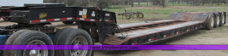 Purple Wave is selling a used Equip. Trailer in Texas. This item is a 2007 Challenger RG50 drop deck semi trailer with the following: 50 ton, Triple axle, 50.5' overall length, 8'6" wide, 24" well, 15' rear deck, 11'5" neck, 11x22.5 rubber tires, (60) ring tie downs, GAWR 25,000lbs, 205W Briggs and Stratton gas powered hydraulic pump, Hydraulic jack
