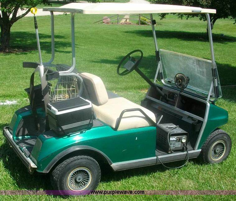 Purple Wave is selling a used Golf Cart in Kansas. This item is a Glub Car electric golf cart with topper with the following: Model A9030215793, 36 volt, Charger, Windshield, Ball washer, Ball retriever, Dash mounted fan, Cooler, Trojan batteries
