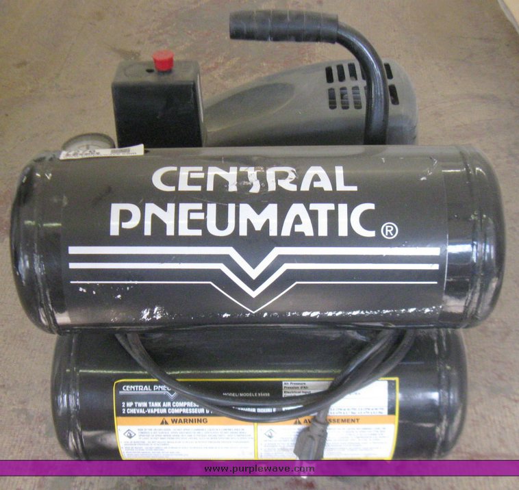 Purple Wave is selling a used Tools in Kansas. This item is a Central Pneumatic air compressor with the following: 2hp, Twin tank, 110v