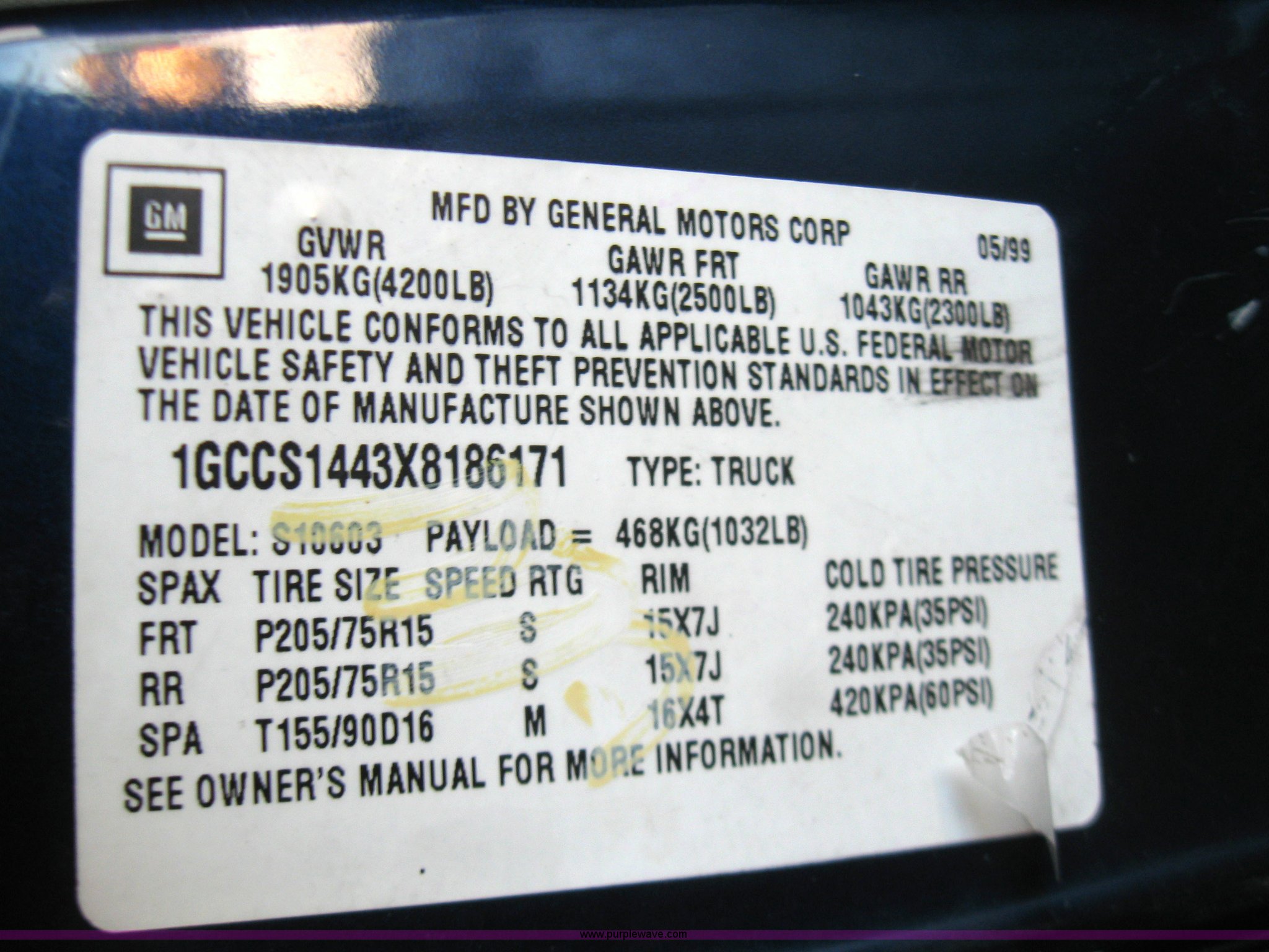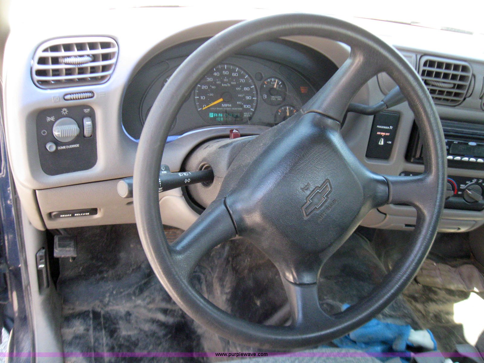 Purple Wave is selling a used Passenger Vehicle in Kansas. This item is a 1999 Chevrolet S10 pickup truck with the following: 108,168 miles on odometer, 2.2L L4 FI OHV 8V, Automatic transmission, AC and heat, AM/FM radio, Manual windows and locks, Bed liner