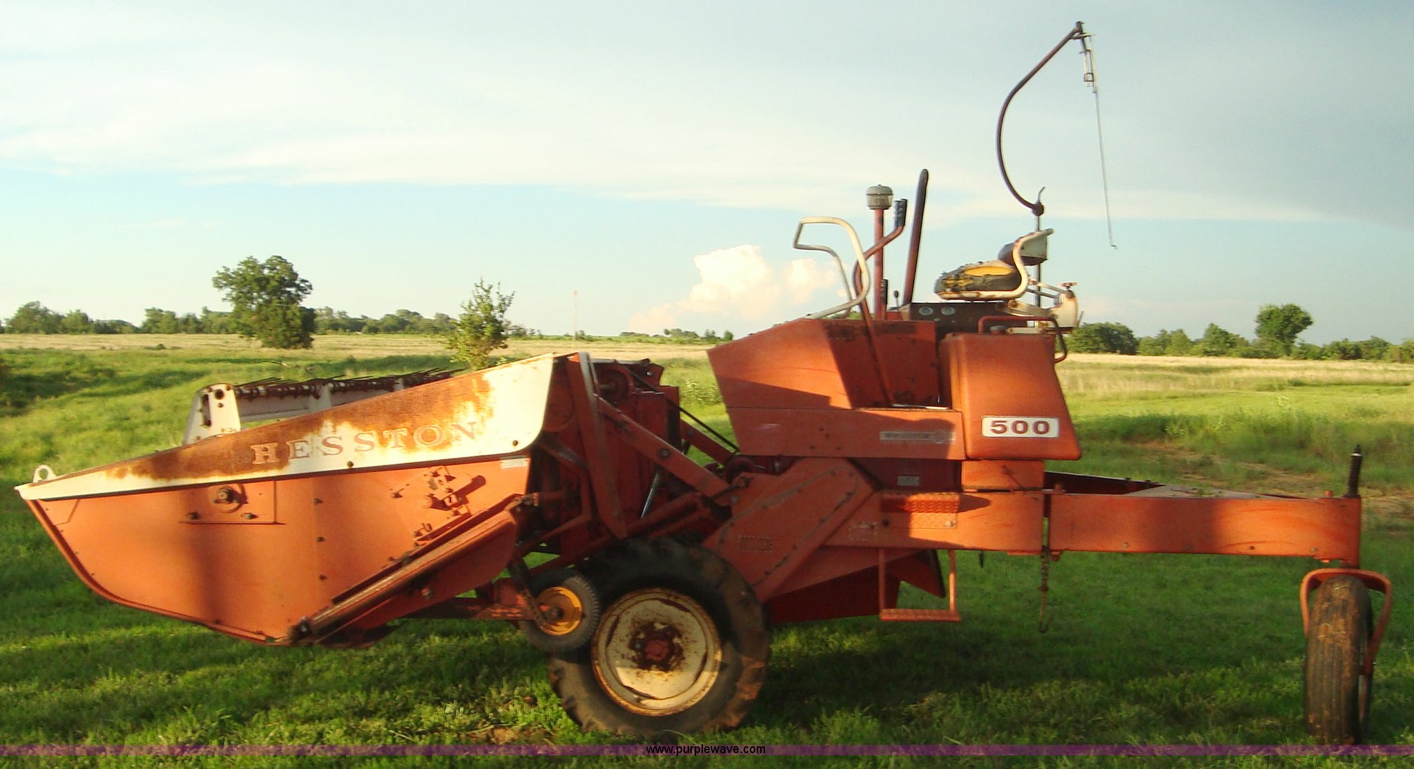 Purple Wave is selling a used Windrower Self Propelled in Oklahoma. This item is a Hesston 500 14' self-propelled swather with the following: Serial HS30-4209