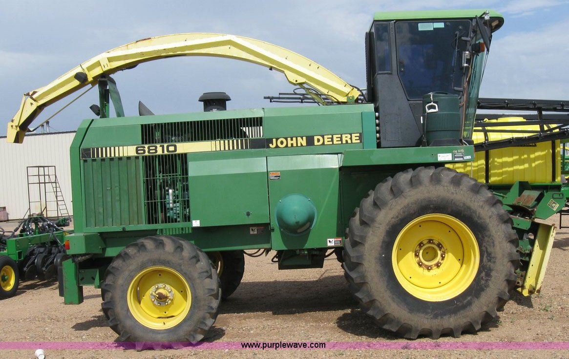 Purple Wave is selling a used Forage Harvester in Texas. This item is a 1997 John Deere 6810 self-propelled forage harvester with the following: 4223 engine hours on meter, 2934 cutter head hours on meter, Cummins N14-C 375hp diesel engine, 48 knives, Knife sharpener, 14.9-24 rear ties, 24.5-32 front tires, AC and heat, Pioneer radio, Instructors seat, Serial Z06810X502395, Stock# 10193