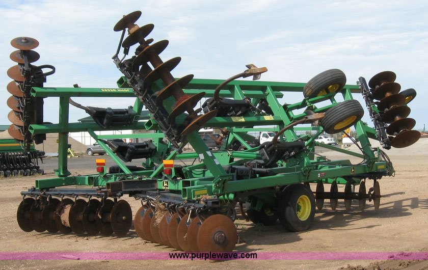 Purple Wave is selling a used Disk Ripper in Texas. This item is a John Deere 512 disk ripper with the following: Nine shank, 22.5', 30" ripper spacings, Hydraulic level adjust, 11L-15 tires, Serial N00512X000487, Stock# 13642