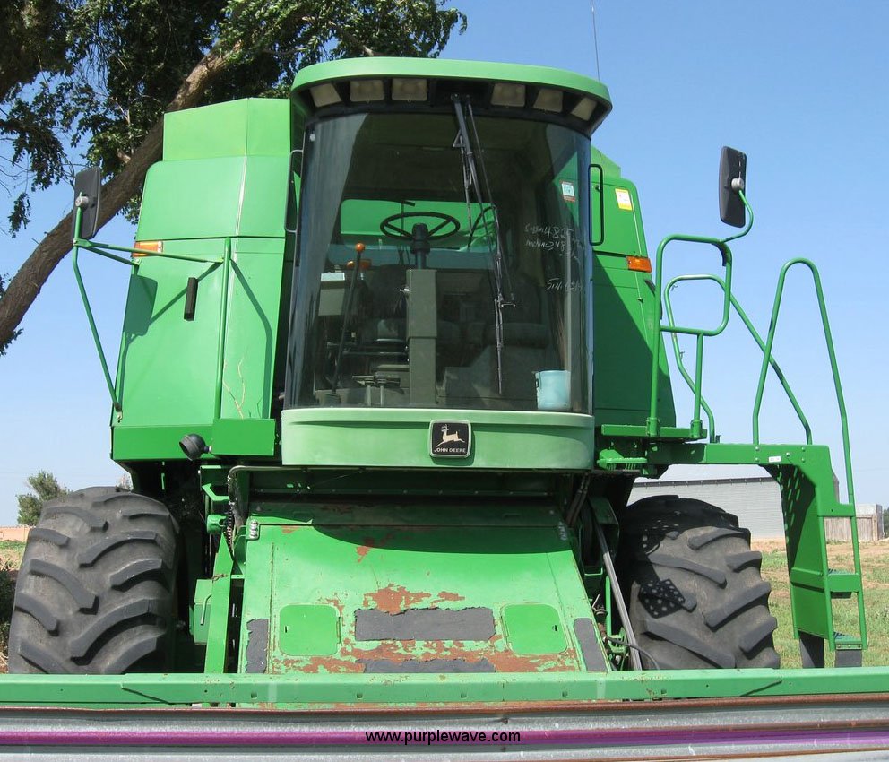 Purple Wave is selling a used Combine in Texas. This item is a 1989 John Deere 9600 combine with the following: 4,826 engine hours on meter, 3,483 separator hours on meter, John Deere six cylinder 466cid 260hp diesel engine, 240 bushel grain tank capacity, Heat and air conditioning, AM/FM radio, Harvest track, Straw spreaders, 30.5L-32 front tires, 14.9-24 rear tires, Serial H09600X631453, Stock# 26614