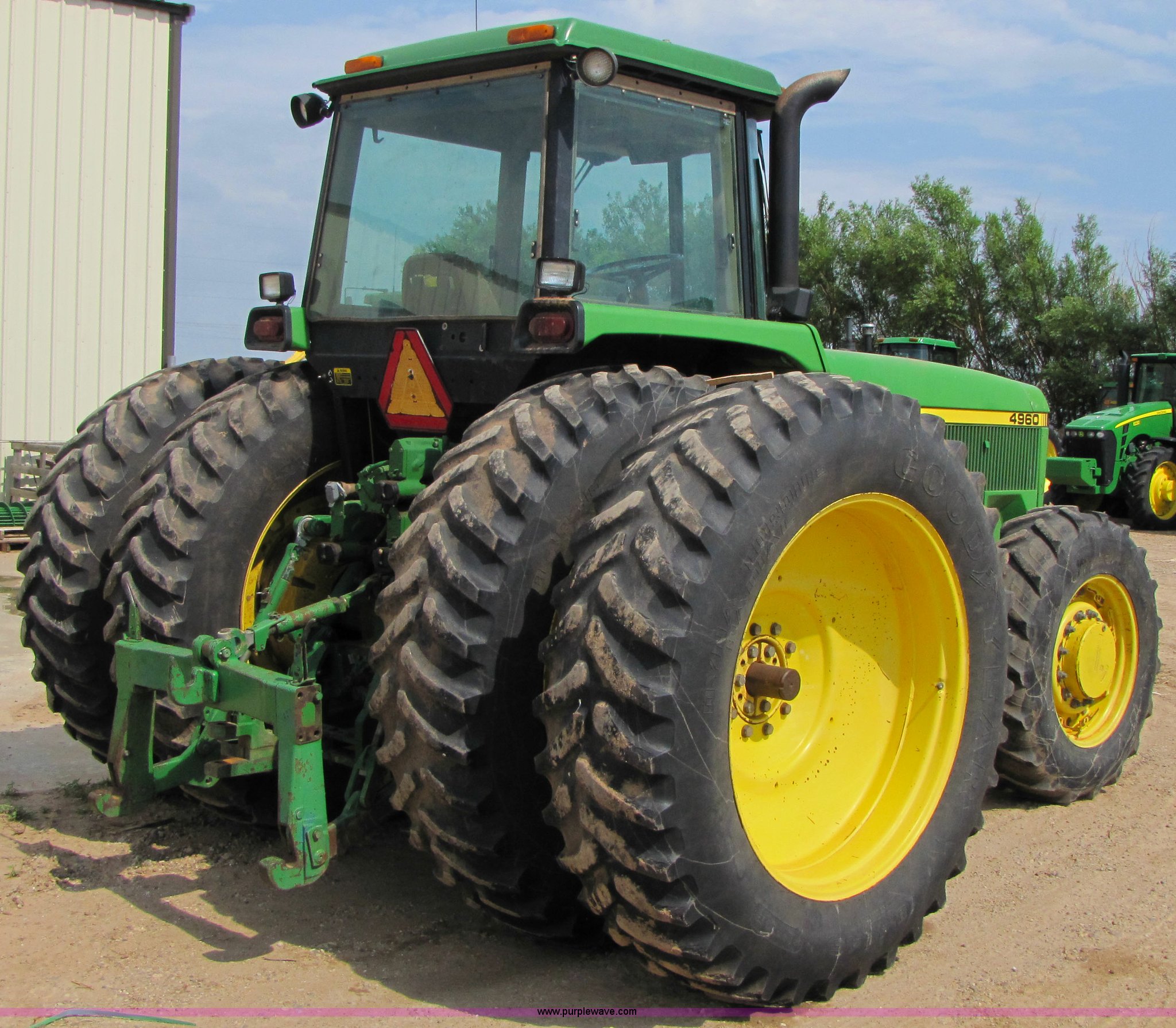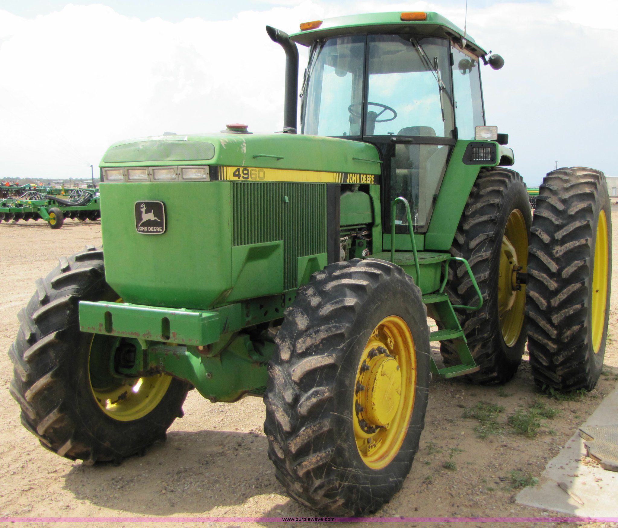 Purple Wave is selling a used Tractor in Texas. This item is a 1992 John Deere 4960 MFWD tractor with the following: 9144 hours on meter, John Deere six cylinder 7.6L turbocharged diesel engine, John Deere powershift transmission, 15 forward and four reverse gears, Differential lock, Four wheel drive, Category III three-point hitch, 1000 PTO, Three hydraulic remotes, Rear wheel weight, 18.4R46 dual rear tiers, 14.9R30 front tires, AM/FM radio, AC and heat, Work lights, Serial RW4960P003622, Stock# 12610