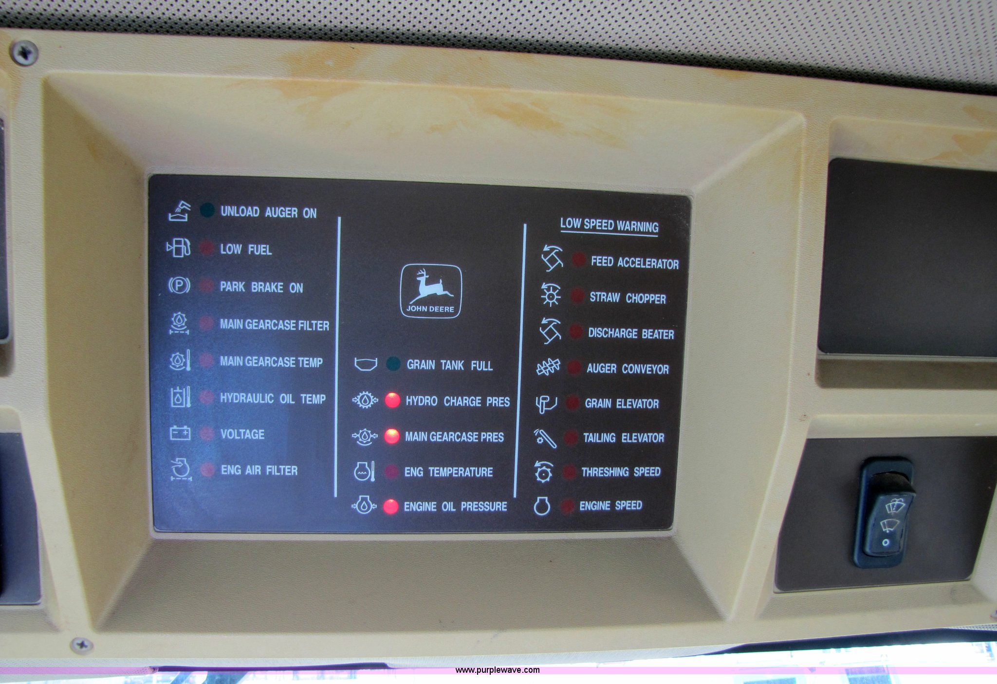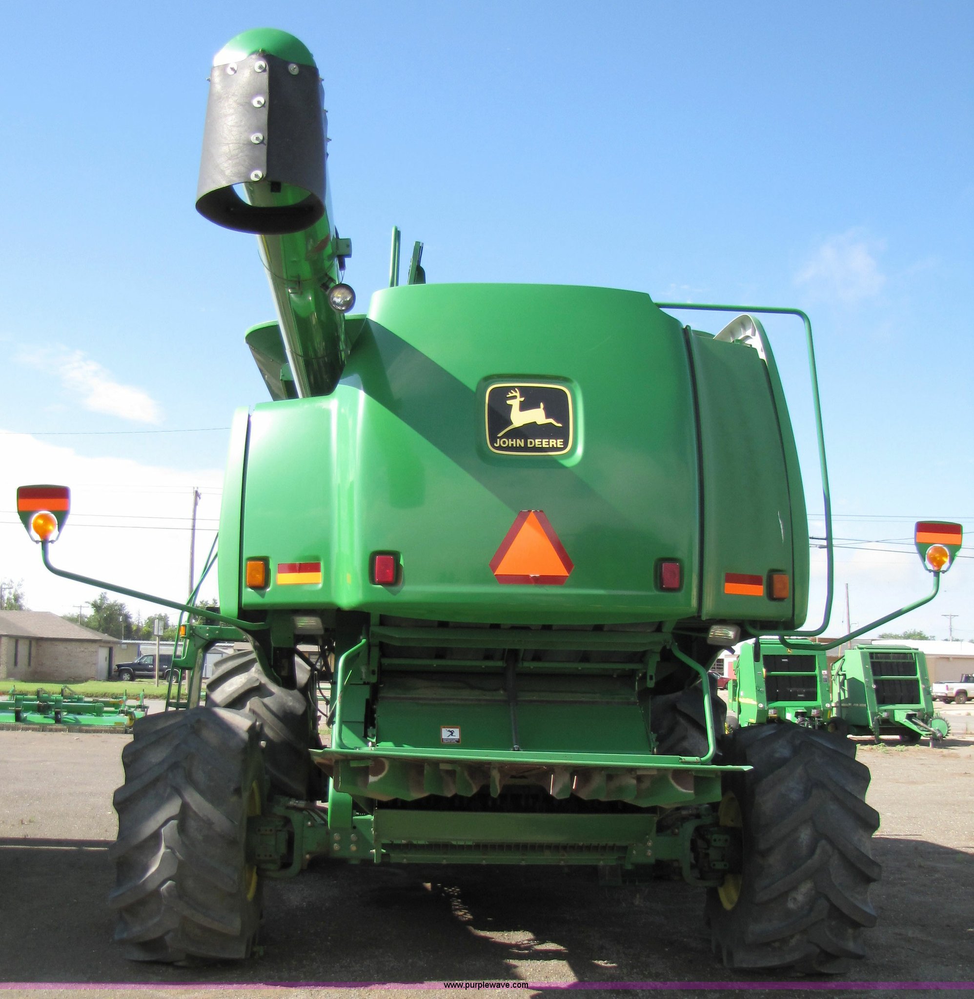 Purple Wave is selling a used Combine in Texas. This item is a 2001 John Deere 9750STS 4x4 combine with the following: 2417 engine hours on meter, 1945 separator hours on meter, John Deere six cylinder 8.1L 325hp turbocharged diesel engine, Model 6081H, Serial RG6081H129842, Three speed transmission with hydrostat, Hydrostats recently rebuilt, 35.5R32 Front Tires, 28L26 Rear Tires, Four wheel drive, Rear drive units recently rebuilt, Hi-capacity unloading auger, Straw chopper, Grain bin extension, Green Star grain loss monitor, Yield mapping, Moisture monitor, AC and heat, AM/FM stereo, Instructors seat, 250 gallon fuel capacity, Work lights, Serial H09750S691094, Stock# 6255