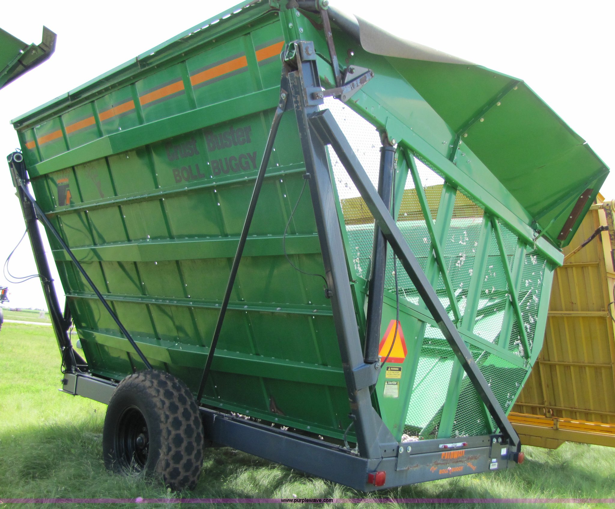 Purple Wave is selling a used Cotton Harvester Equip. in Texas. This item is a 2002 CrustBuster Super-BB boll buggy with the following: 1,015 cu.ft. capacity, Hydraulic dump, Ball hitch, Tail lights, 18.4-26 turf tires, Serial 15261, Stock# 5138