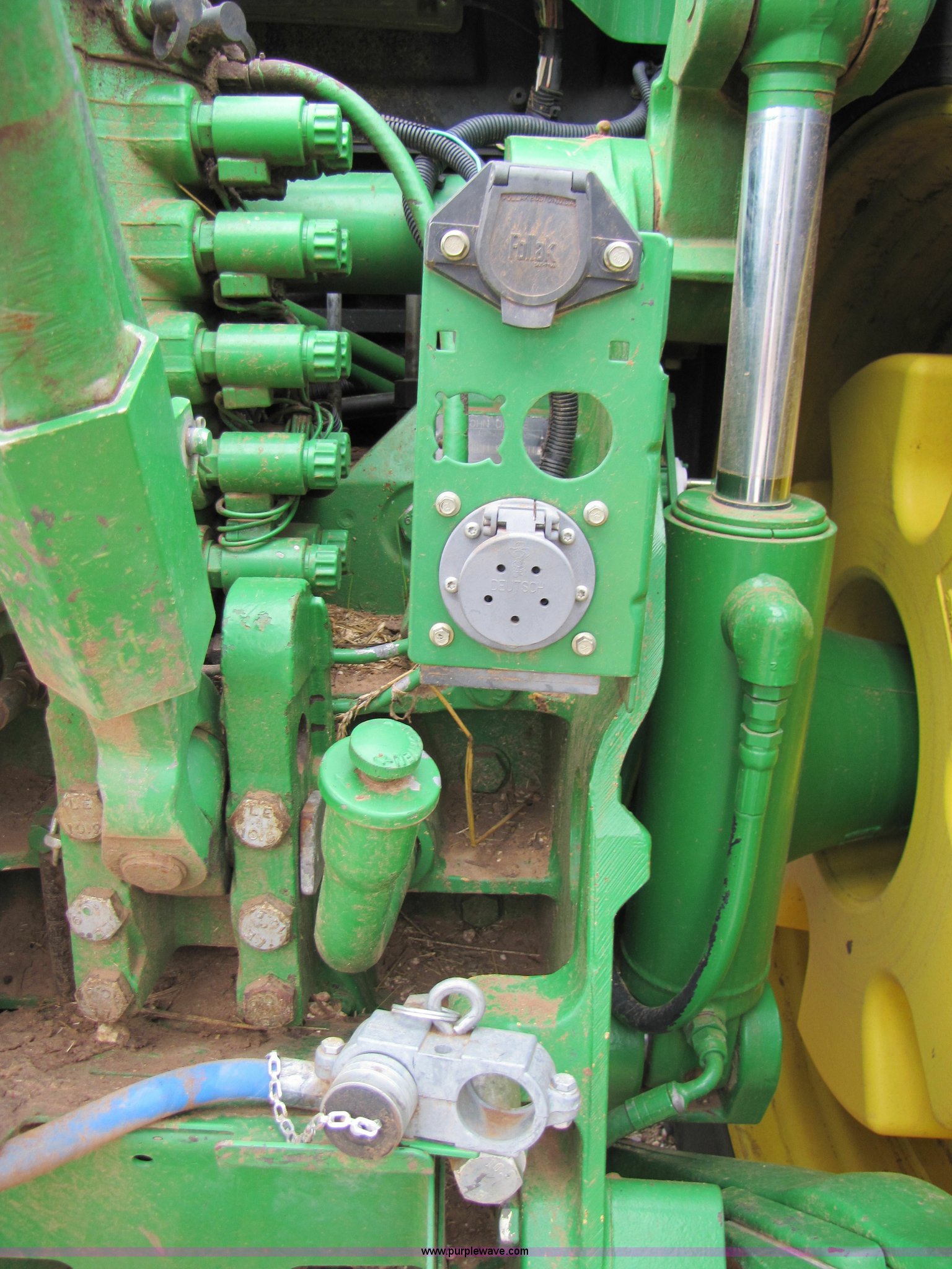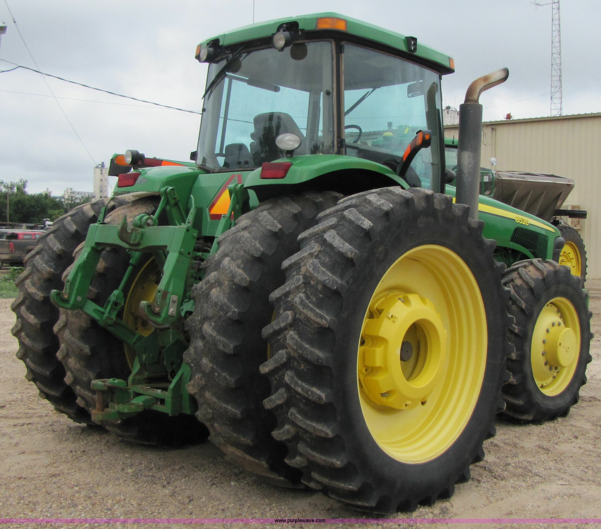 Purple Wave is selling a used Tractor in Texas. This item is a 2002 John Deere 8520 MFWD tractor with the following: 5505 hours on meter, John Deere six cylinder 8.1L turbocharged diesel engine, Serial RC6081H206755, Powershift transmission, 16 forward and 4 reverse gears, Four wheel drive, Differential lock, Independent link suspension, Three point hitch with quick tach, 1000 PTO, Four sets hydraulic remotes, Nine- and seven-pin electrical outlets, AC and heat, AM/FM radio, (22) front weights, 480/80R50 rear dual tires, Inner and outer rear wheel weights, 420/85R34 front tires, 160 gallon fuel tank, Serial RW8520P003699, Stock# 13085