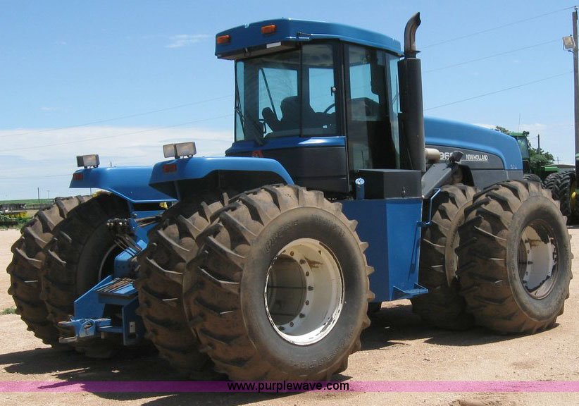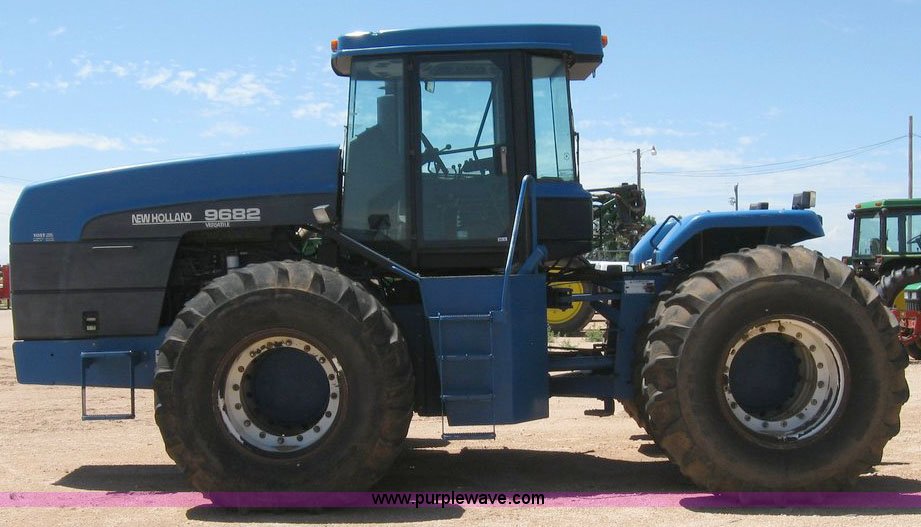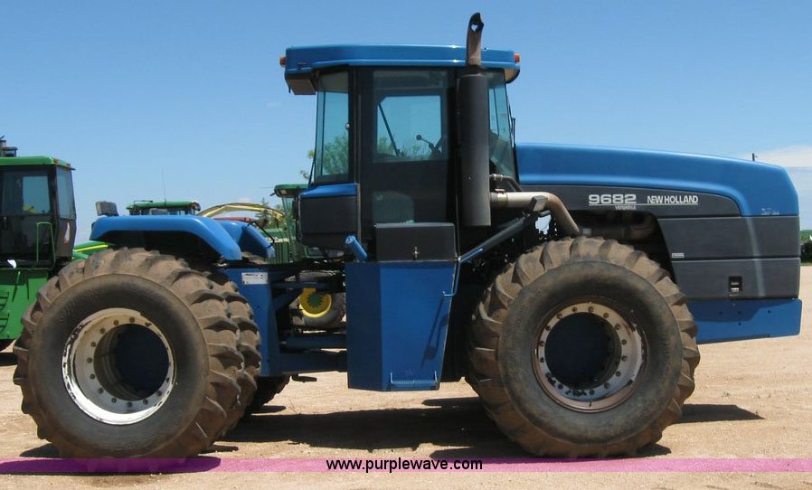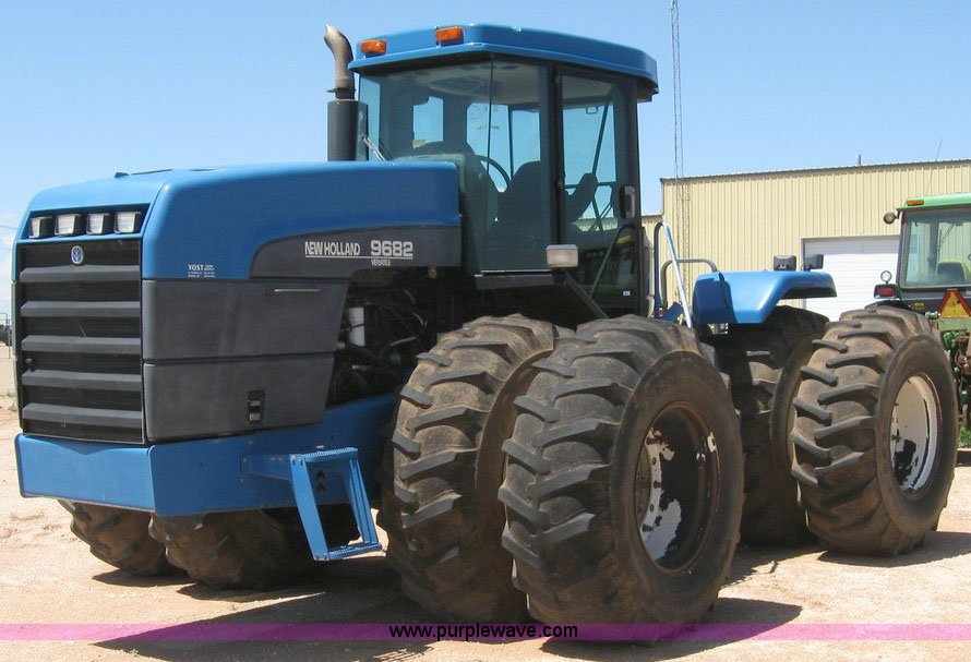 Purple Wave is selling a used Articulated 4-Wheel Drive Tractor in New Mexico. This item is a 1997 New Holland 9682 tractor with the following: 5882 hours on meter, Cummins N14-A diesel engine, 12 speed synchronized transmission, Four wheel drive, 24.5-32 duals, Four hydraulic remotes, Draw bar, AC and heat, Panasonic AM/FM radio, Windshield wiper, Serial D105311, Stock# 12605