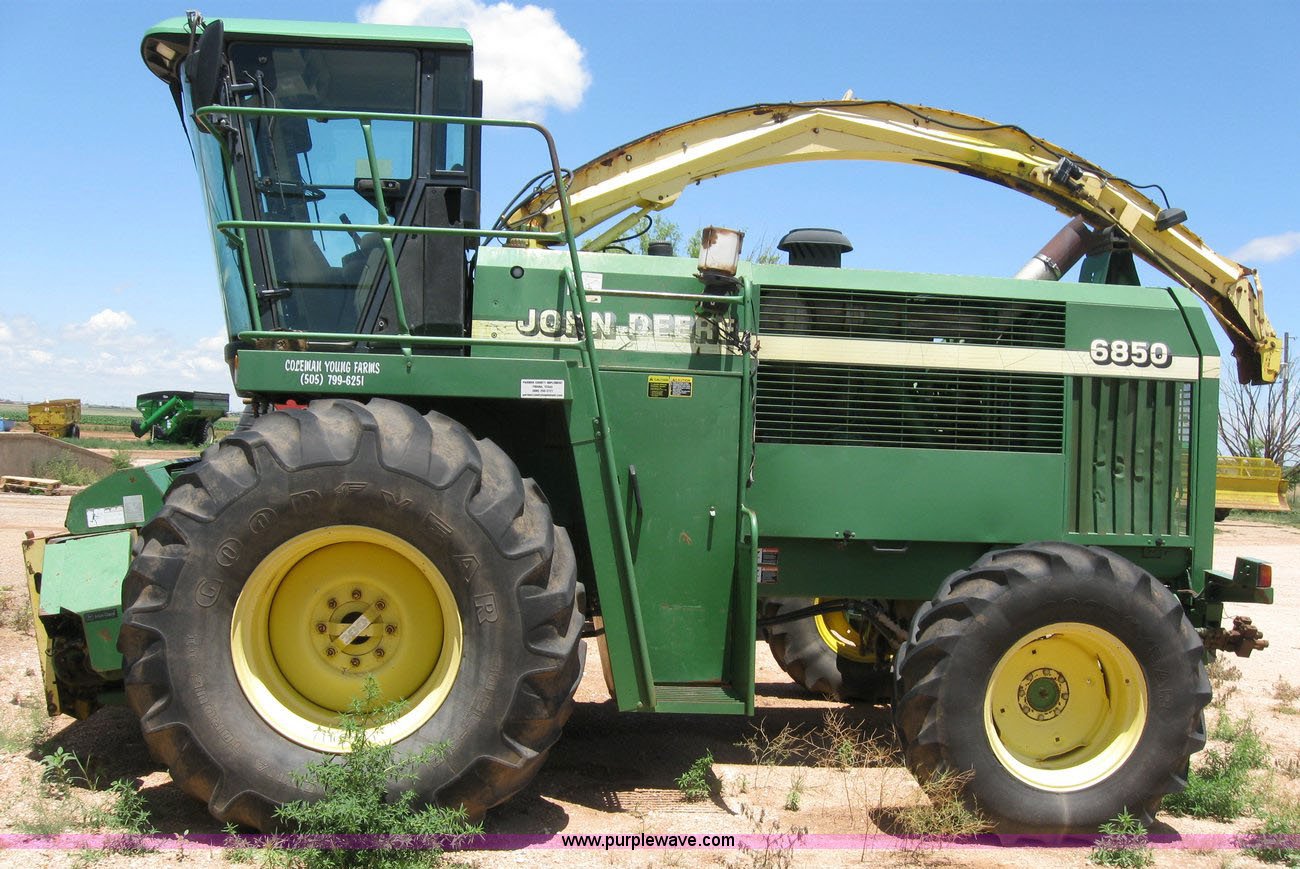 Purple Wave is selling a used Forage Harvester in New Mexico. This item is a 1998 John Deere 6850 self-propelled forage harvester with the following: 4445 engine hours on meter, 3522 cutter hours on meter, John Deere 12.5L 440hp engine, Hydrostatic transmission, Four wheel drive, 48 knives, Kernel processor, Auto lube system, Auxiliary rear hydraulics, Air conditioning, Serial Z06850X503188, Stock# 11204