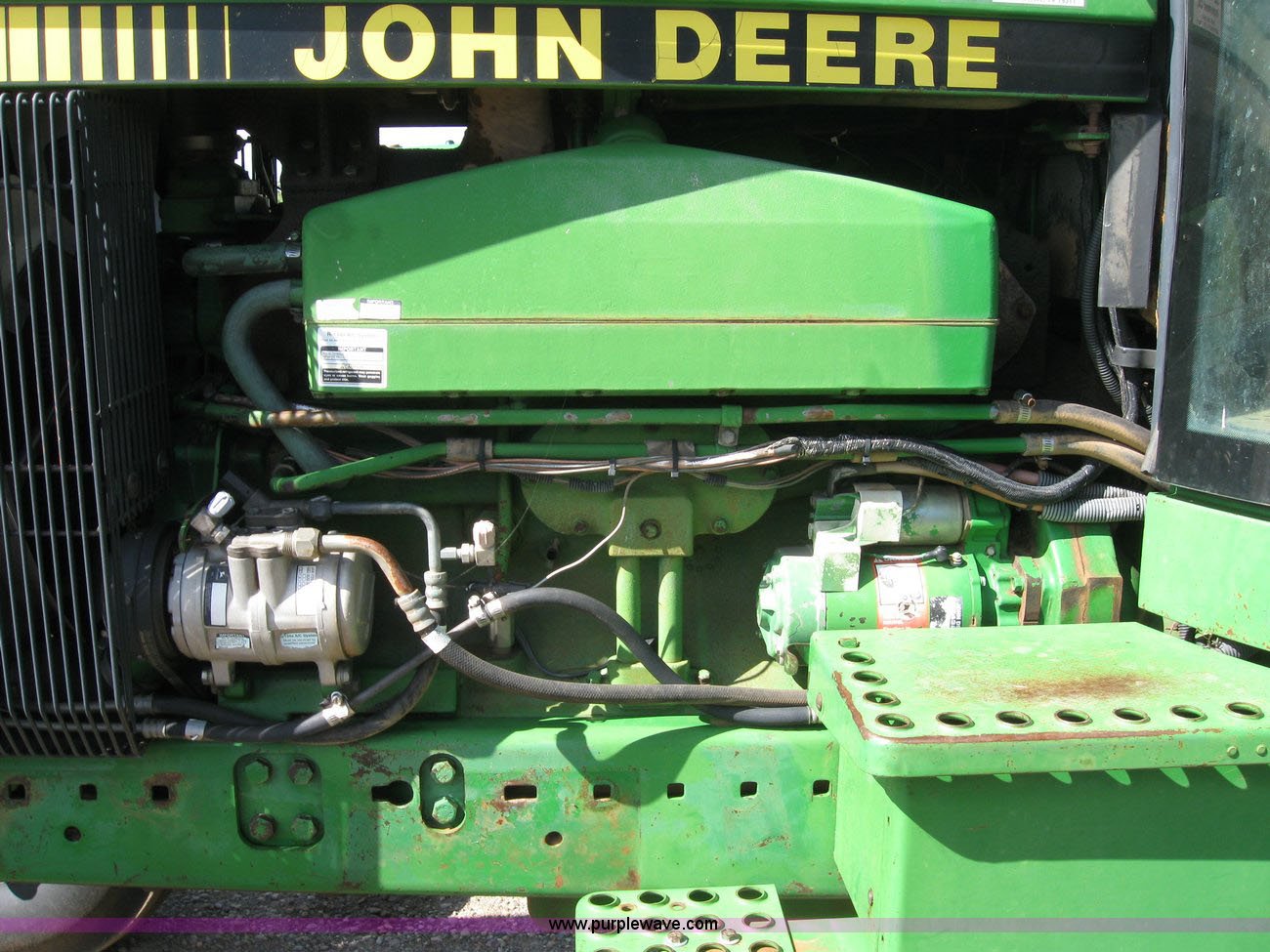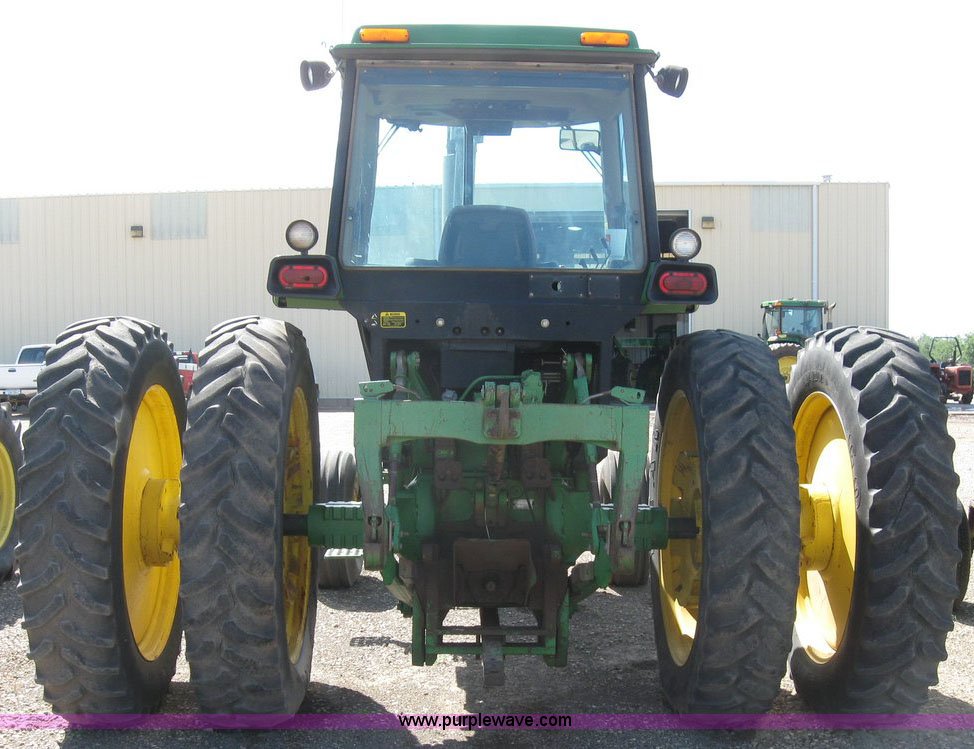 Purple Wave is selling a used Tractor in Texas. This item is a 1991 John Deere 4755 tractor with the following: 10,345 hours on meter, John Deere six cylinder 466cid 177hp engine, 15 speed shuttle shift transmission, Three point with quick hitch, 1 5/8" 1000 PTO, Three hydraulic remotes, Draw bar, Front tractor weights, 14.9R46 rear dual tires with inside weights, 11.00-16S front tires, AC and heat, AM/FM radio, Bad hydraulic pump, Serial RW4755P007425, Stock# 14471