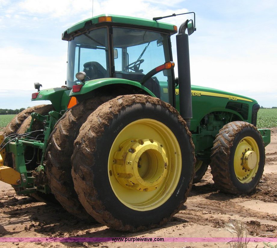 Purple Wave is selling a used Tractor in Texas. This item is a 2004 John Deere 8420 MFWD tractor with the following: 6614 hours on meter, John Deere six cylinder 496cid 235hp diesel engine, Power shift transmission, 16 forward and 4 reverse gears, Deluxe cab, Active seat, Instructors seat, AC and heat, AM/FM radio, (5) hydraulic remotes with power beyond, Greenstar ready, 14.9R34R front tires, 480/80R46 dual rear tires, 4,850 lbs total rear axle weights, 1,200 lbs of suitcase weights, Serial RW8420P021218, Stock# 12593