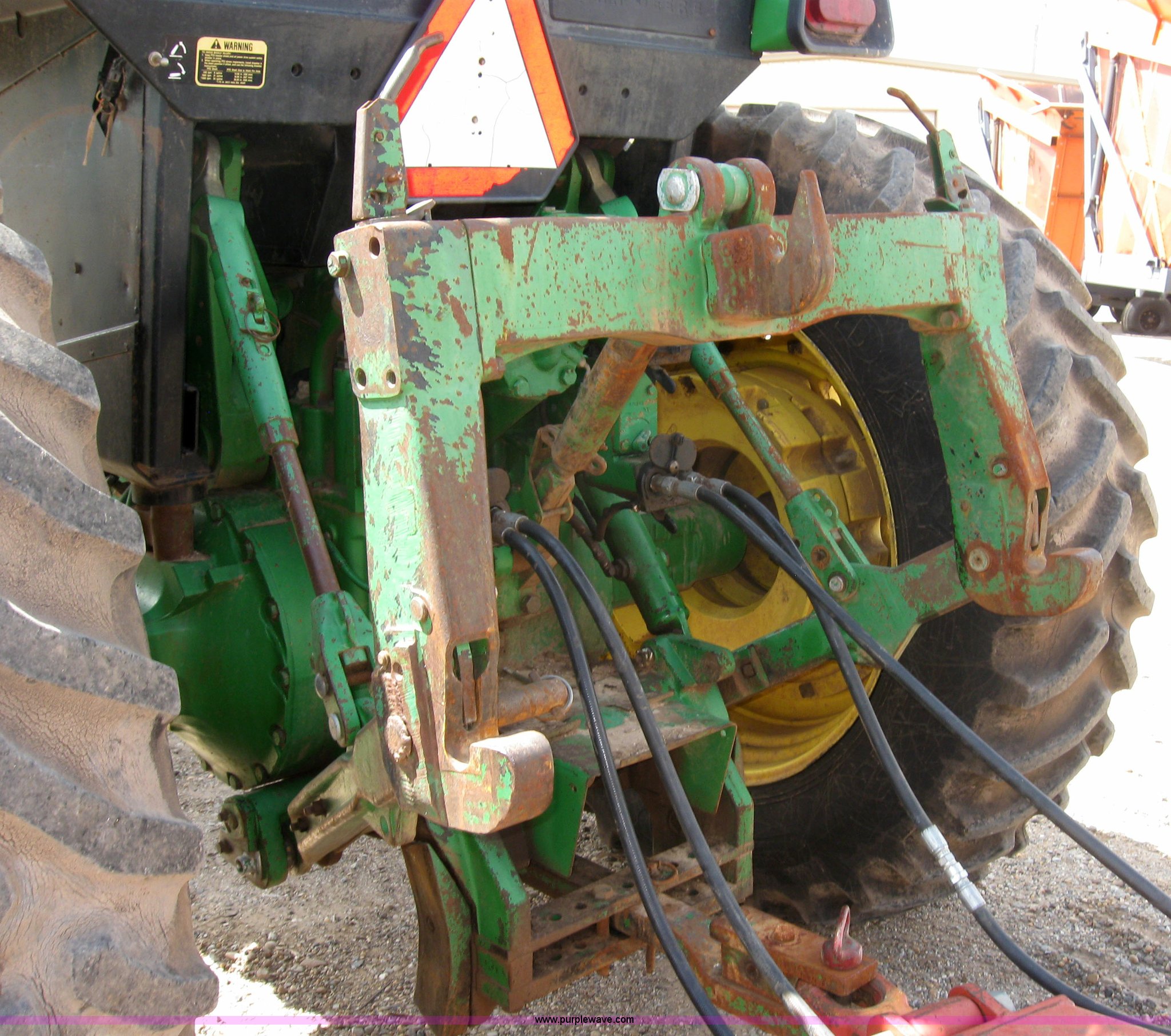 Purple Wave is selling a used Tractor in Texas. This item is a 1989 John Deere 4955 MFWD tractor with the following: 10,765 hours on meter, John Deere six cylinder diesel, Model 6076ARW03, RG6076A103875, 15 speed power shift transmission, Heat and air conditioning, AM/FM radio, Three hydraulic remotes, Three point with quick hitch, Large 1000 PTO, Front suitcase weights, 380/85R30 front tires, 480/80R42 rear tires, Serial RG6076A103875, Stock# 15372