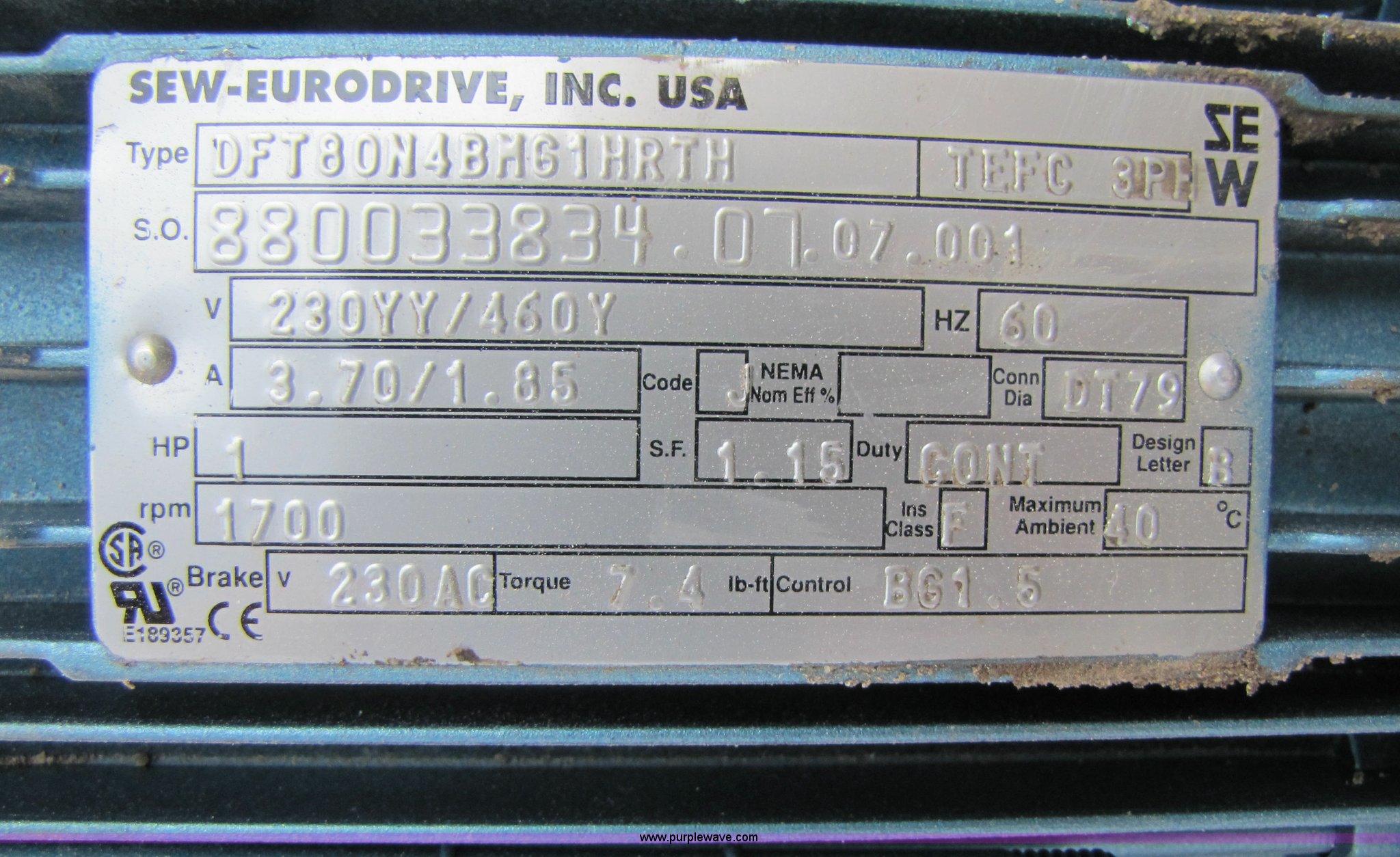 Purple Wave is selling a used Other Industrial or Business in Missouri. This item is a SEW Eurodrive 1hp motor with the following: Three phase, 1700 RPM, 230/460 volt, 60 Hz