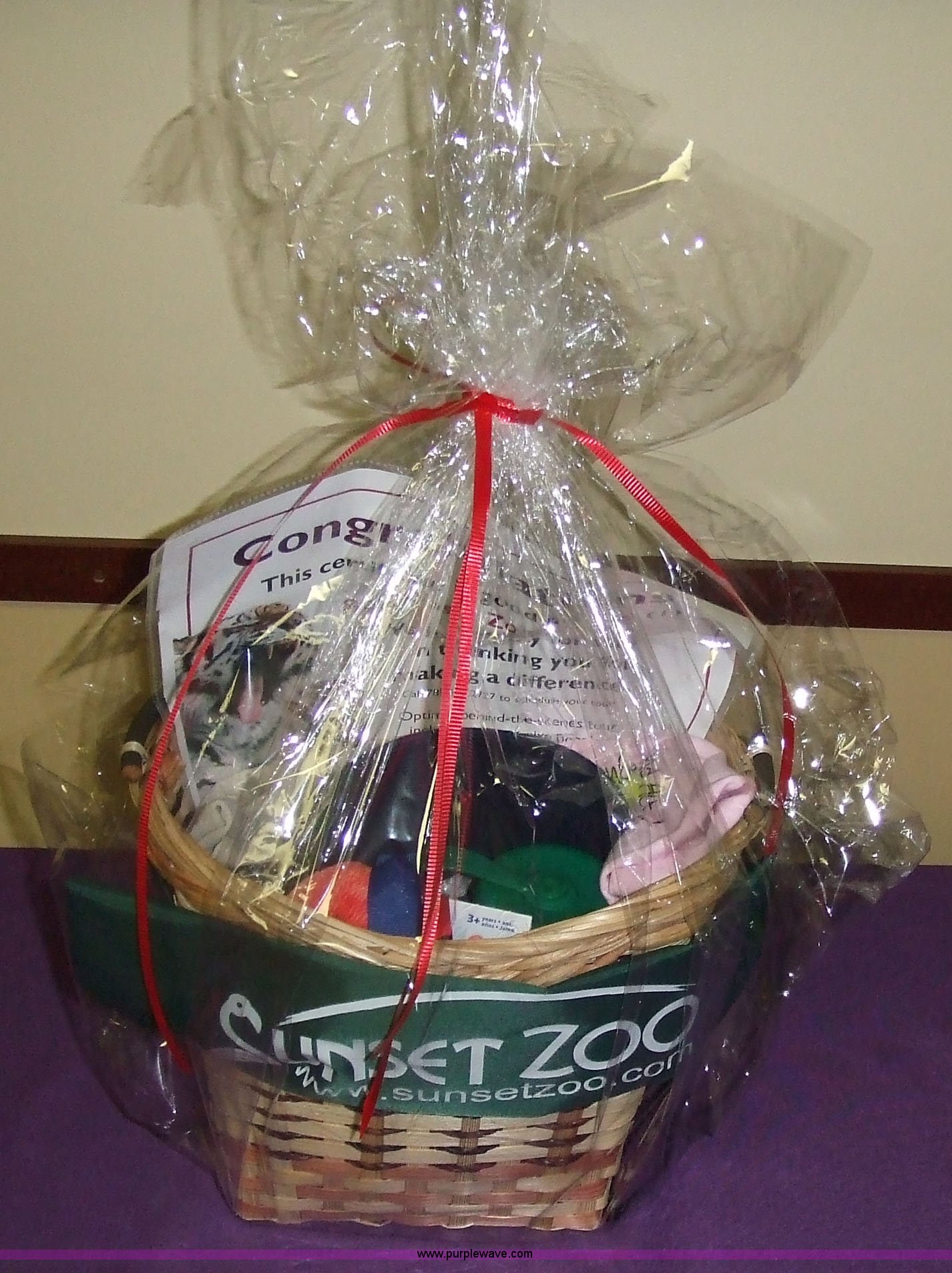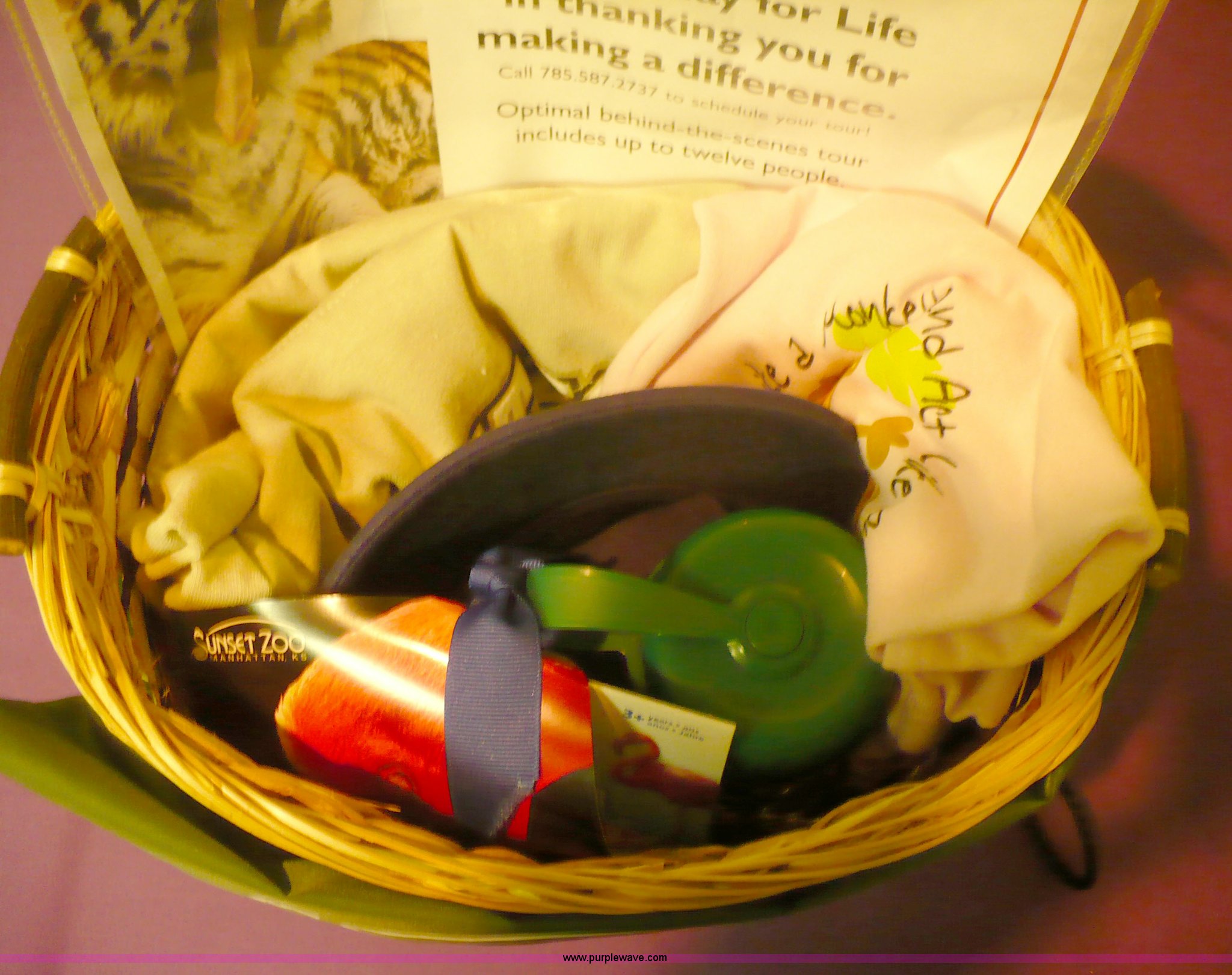 Purple Wave is selling a used Other Industrial or Business in Kansas. This item is a "Explore Sunset Zoo" with the following: Behind the scenes tour of Sunset Zoo for up to 12 people, Sunset Zoo hat, Sunset Zoo bear T-shirt, size XL, Sunset Zoo monkey T-shirt, size youth M, Flamingo water gun, Sunset Zoo water bottle, Stick sunscreen, Stick chap-stick, Sunset Zoo family pass for up to five people, Ceramic tiger, Sunset Zoo backpack