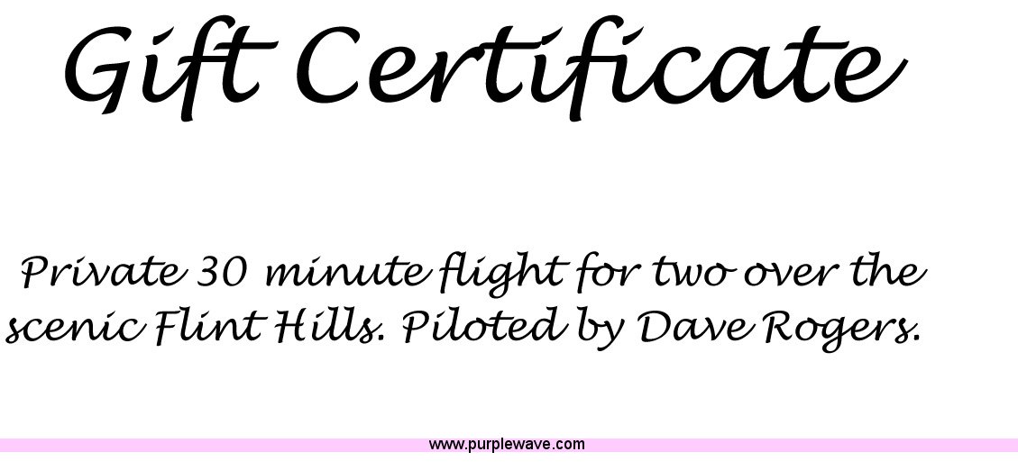 - Private 30 minute flight for two over the Flint Hills with pilot Dave Rogers