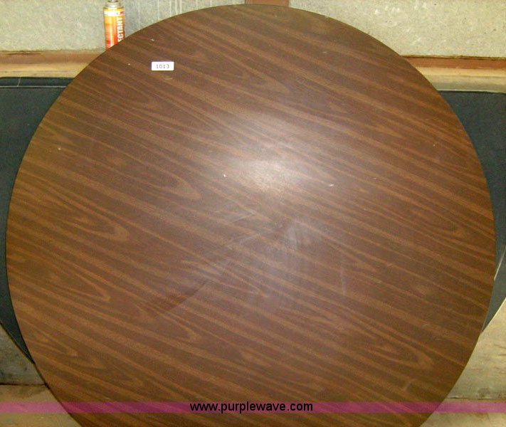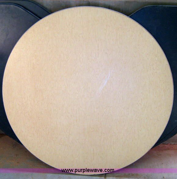 Purple Wave is selling a used Furniture in Kansas. This item is a (4) tables with the following: Two round, 4' and 5', Two kidney shape tables with legs, 6' and 4'