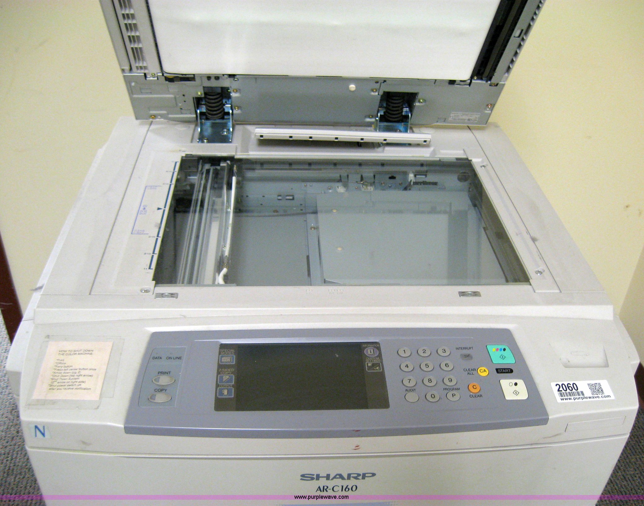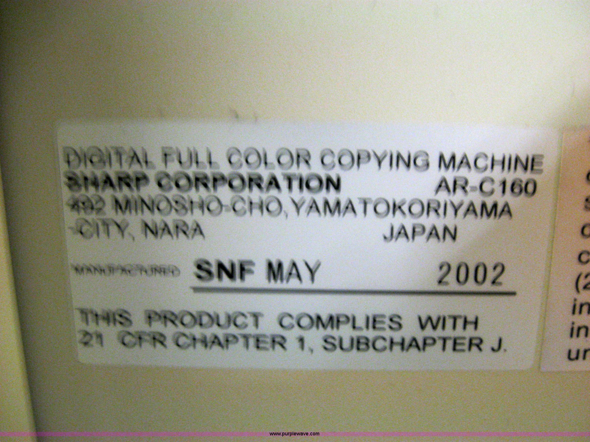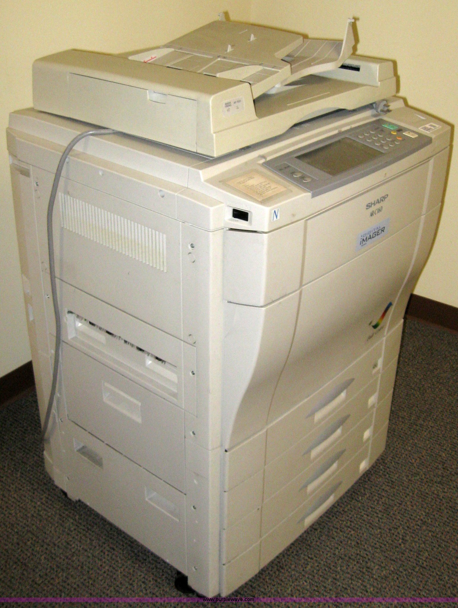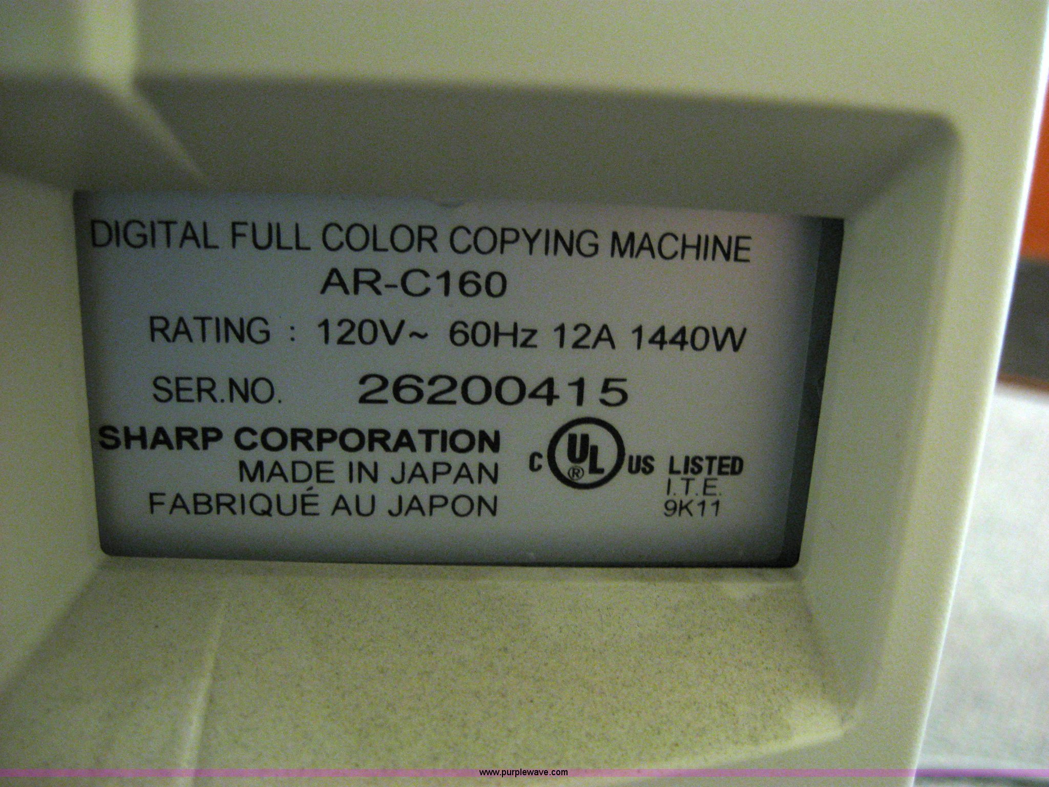 Purple Wave is selling a used Electronics in Kansas. This item is a 2002 Sharp AR-C160 digital imager copier with the following: No hard drive, Has not been used a couple of years, Serial 26200415