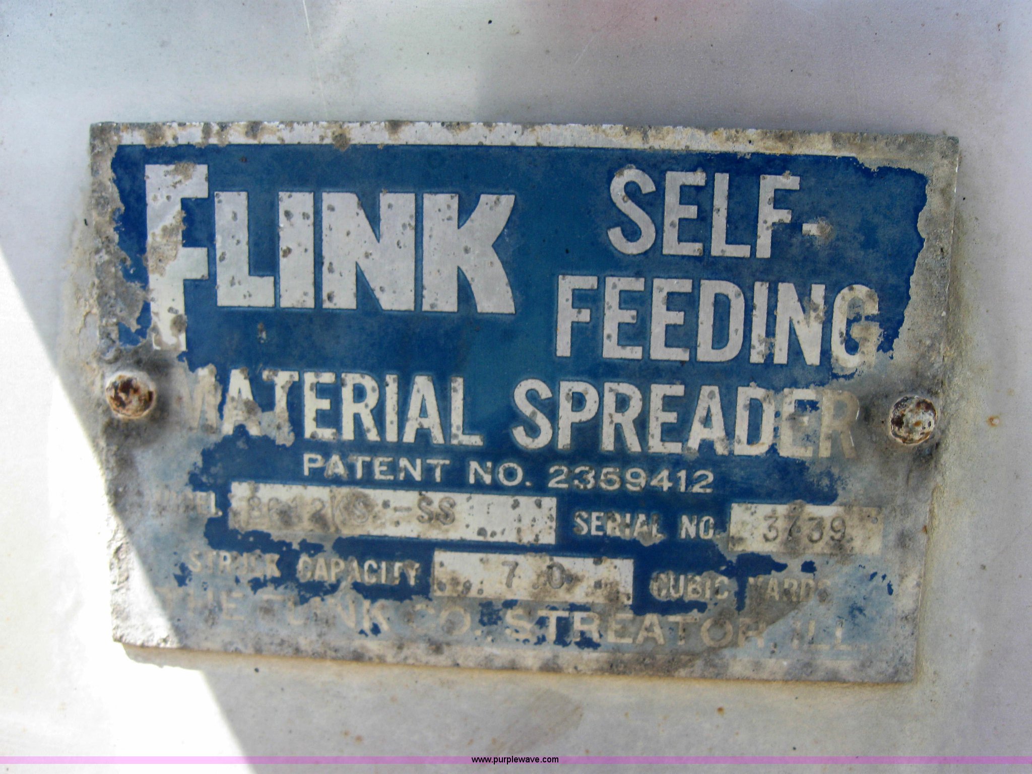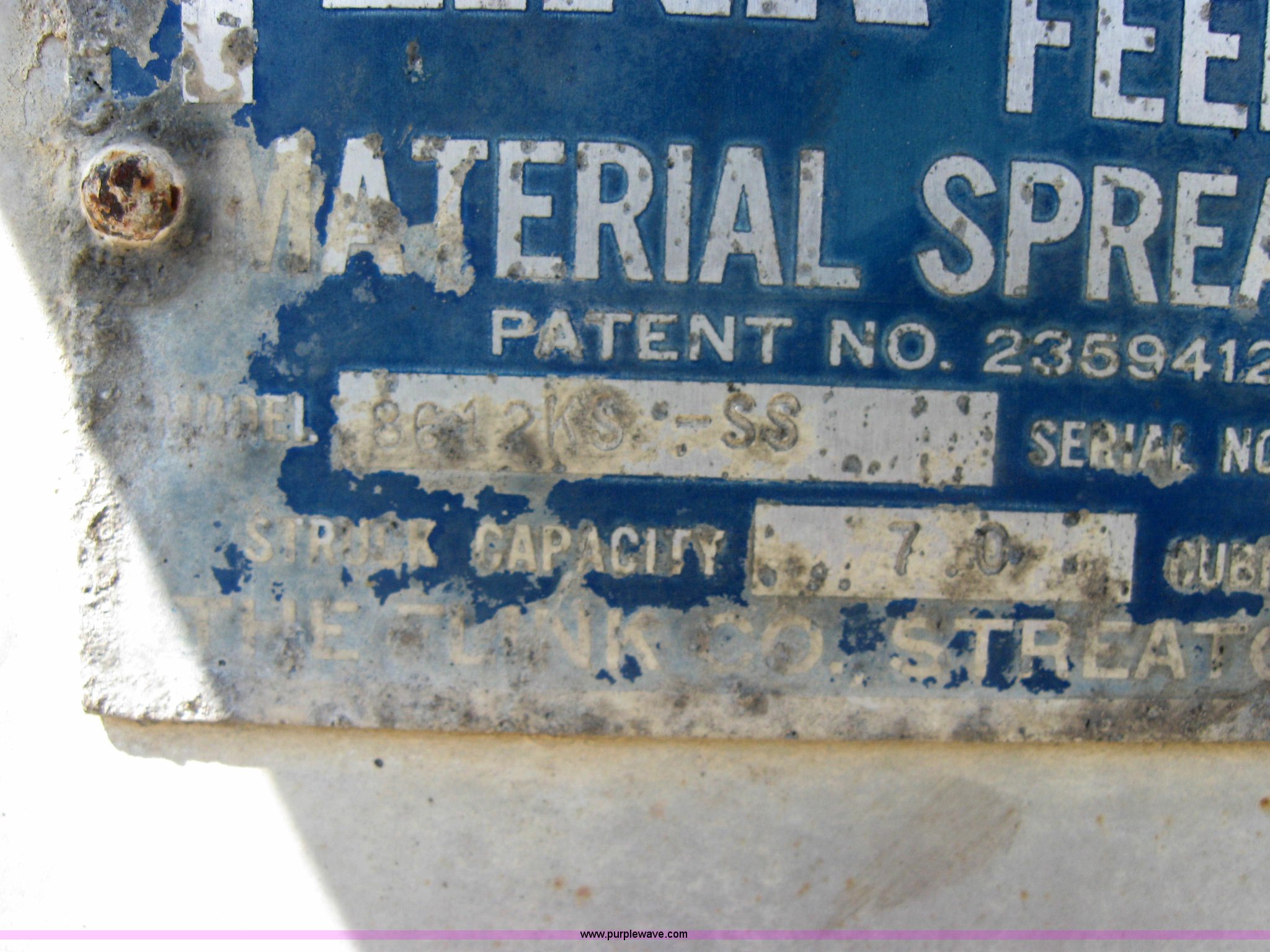Purple Wave is selling a used Truck Part and Attach. in Kansas. This item is a Fink stainless steel self feeding spreader with the following: Model 8612KS-SS, Serial 3739, 7.0 cubic yard capacity, Fits ICN 2196