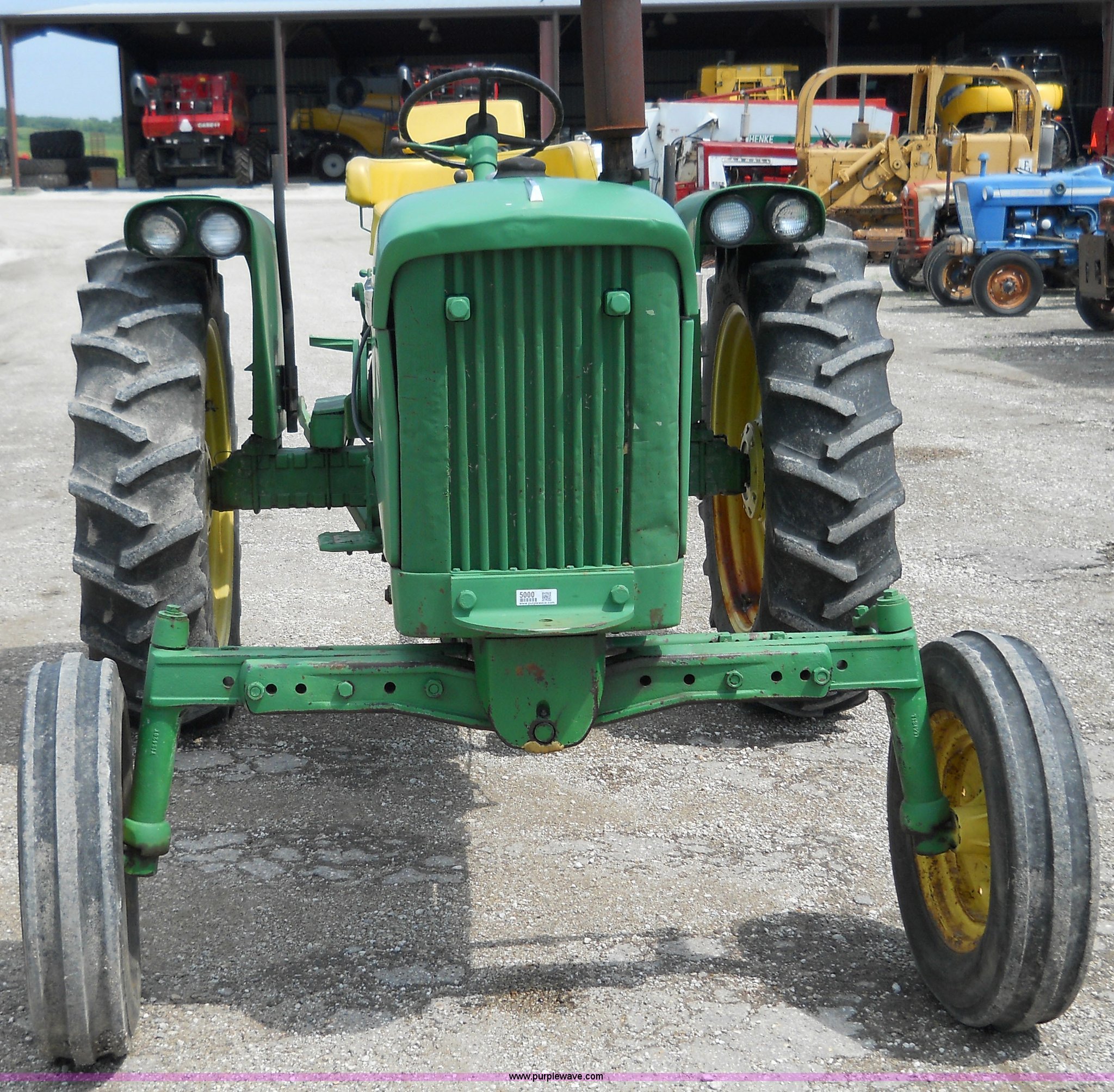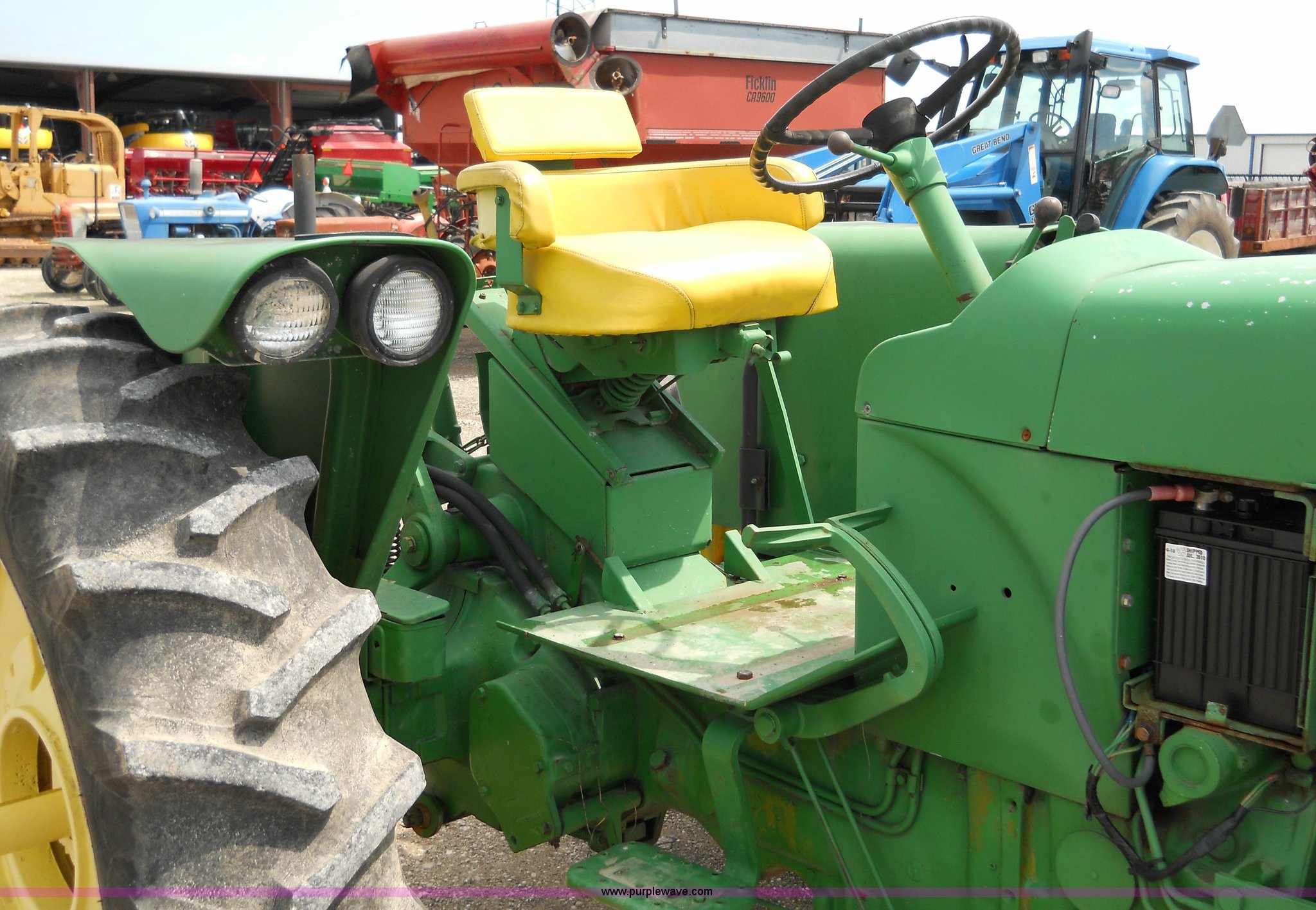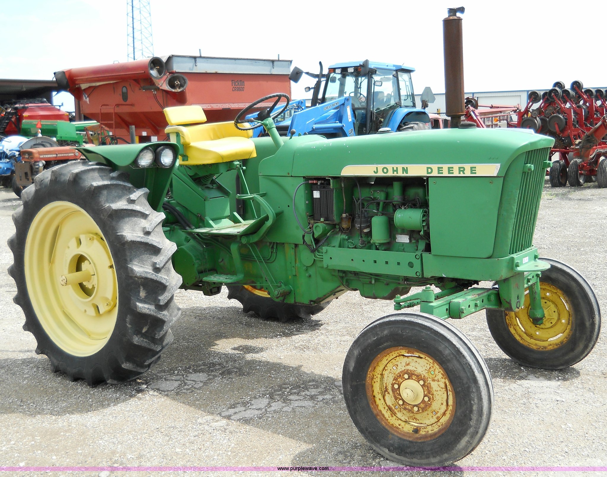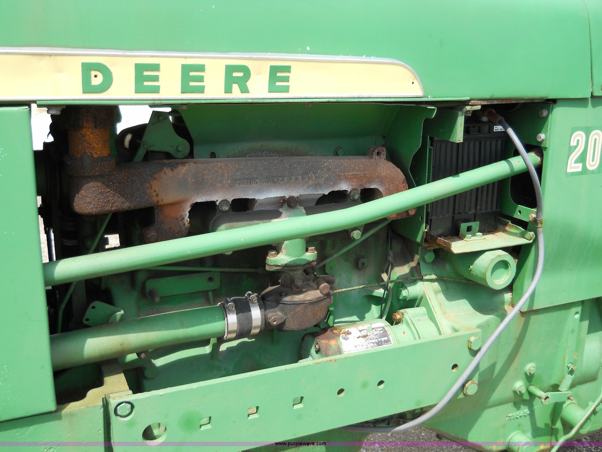 Purple Wave is selling a used Tractor in Kansas. This item is a John Deere 2010 tractor with the following: 3308 hours on meter, Record indicates year of manufacture to be 1961, Four cylinder 46hp gas engine, Eight speed transmission with two reverse gears, One set hydraulic remotes, 540 PTO, Three point, 13.9-36 rear tires, 6.00-16SL front tires, Serial 14108