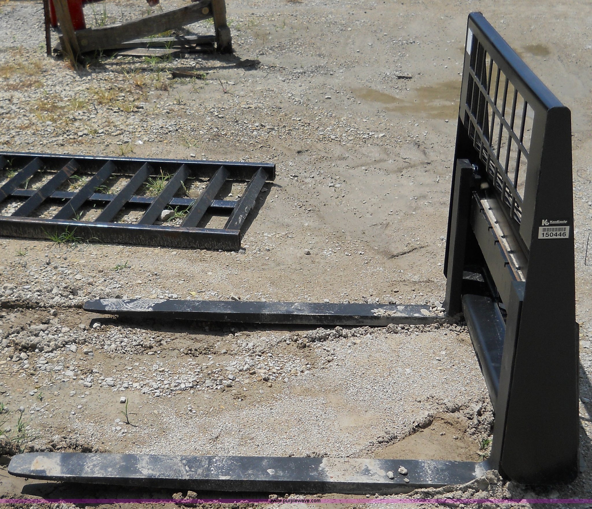 Purple Wave is selling a used Other Attach. or Equip. in Kansas. This item is a Pallet fork skid steer attachment with the following: 48" tines, 45" carriage width, 3,500 lbs capacity