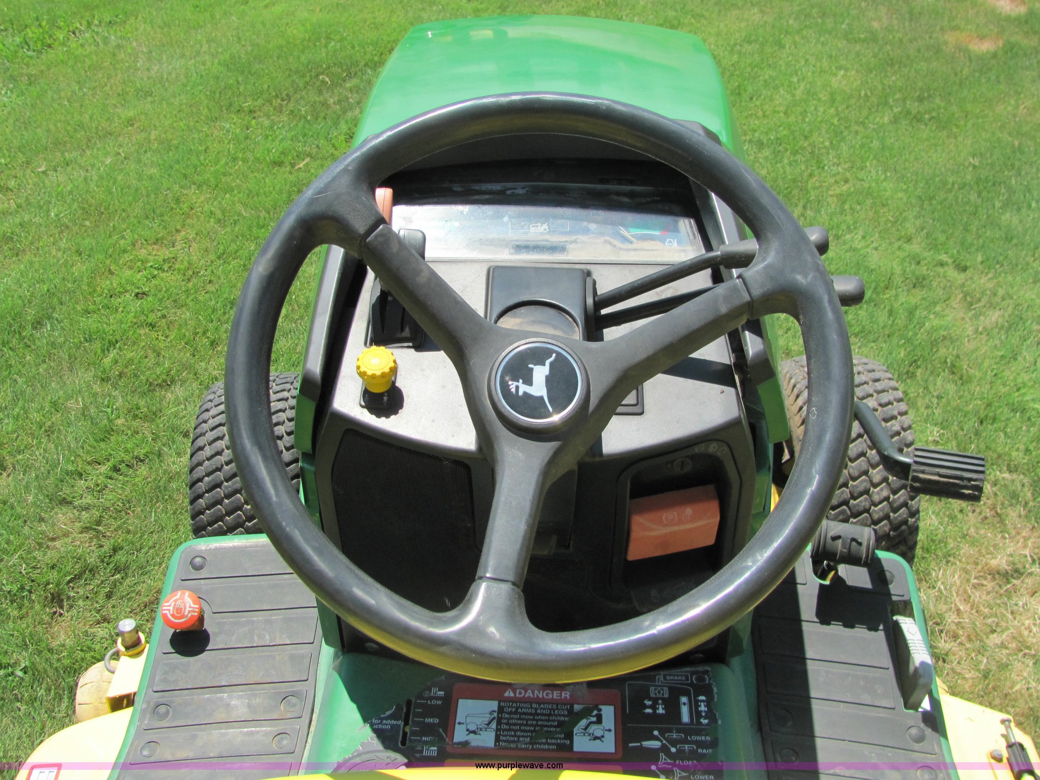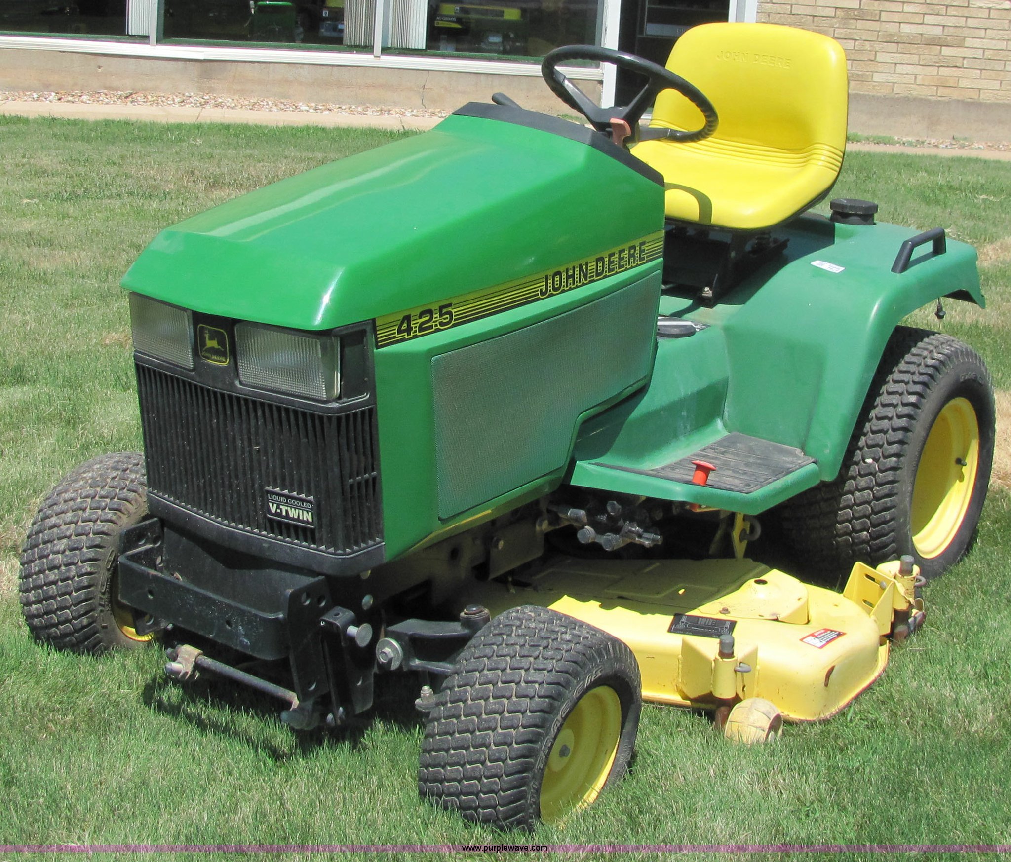 Purple Wave is selling a used Lawn Mower in Kansas. This item is a 1997 John Deere 425 riding lawn mower with the following: 547 hours on meter, John Deere 20 hp OHV liquid cooled gas engine, Hydrostatic transmission, 48" deck, Hydraulic deck raise, Serial M00425A050821