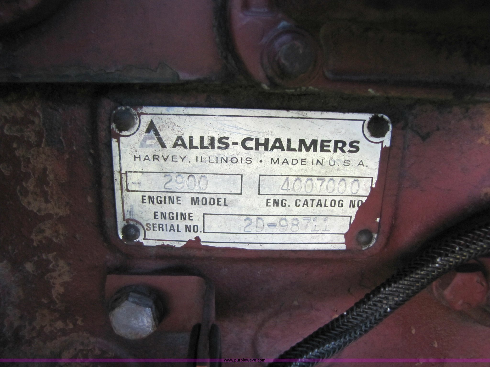 Purple Wave is selling a used Tractor in Kansas. This item is a Allis Chalmers AC7000 tractor with the following: 3182 hours on meter, Six cylinder 4.9L turbocharged diesel engine, Model 2900, 89hp at draw bar, Partial power shift transmission, 12 forward and 3 reverse gears, Three point, 540 PTO, (2) hydraulic remotes, (6) front mount weights, 18.4-38 rear tires, 10.00-16 front tires