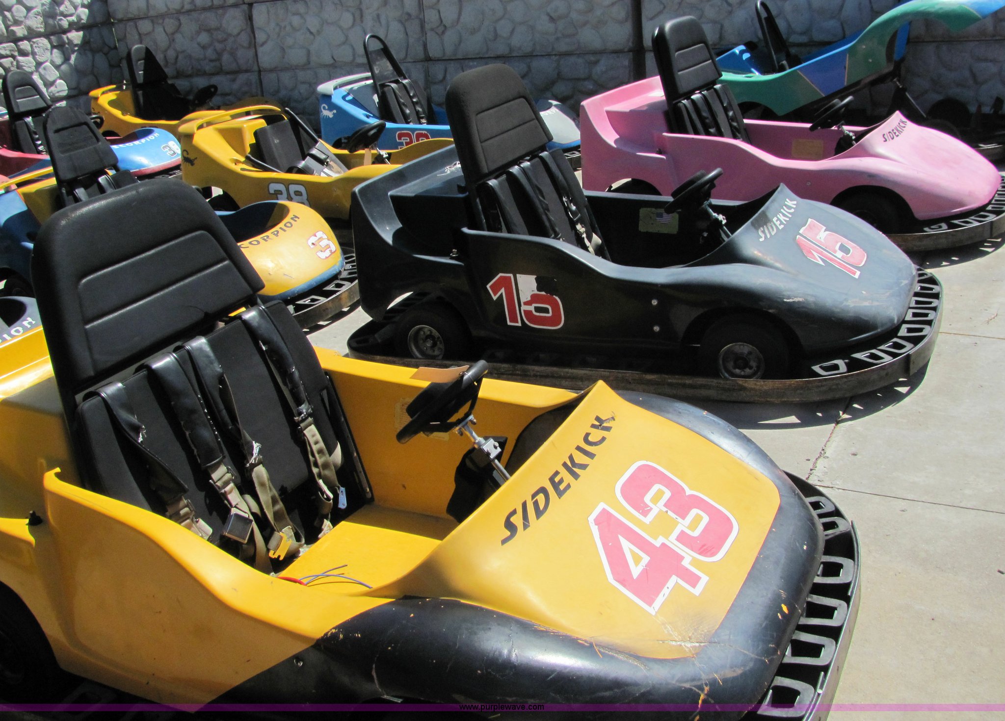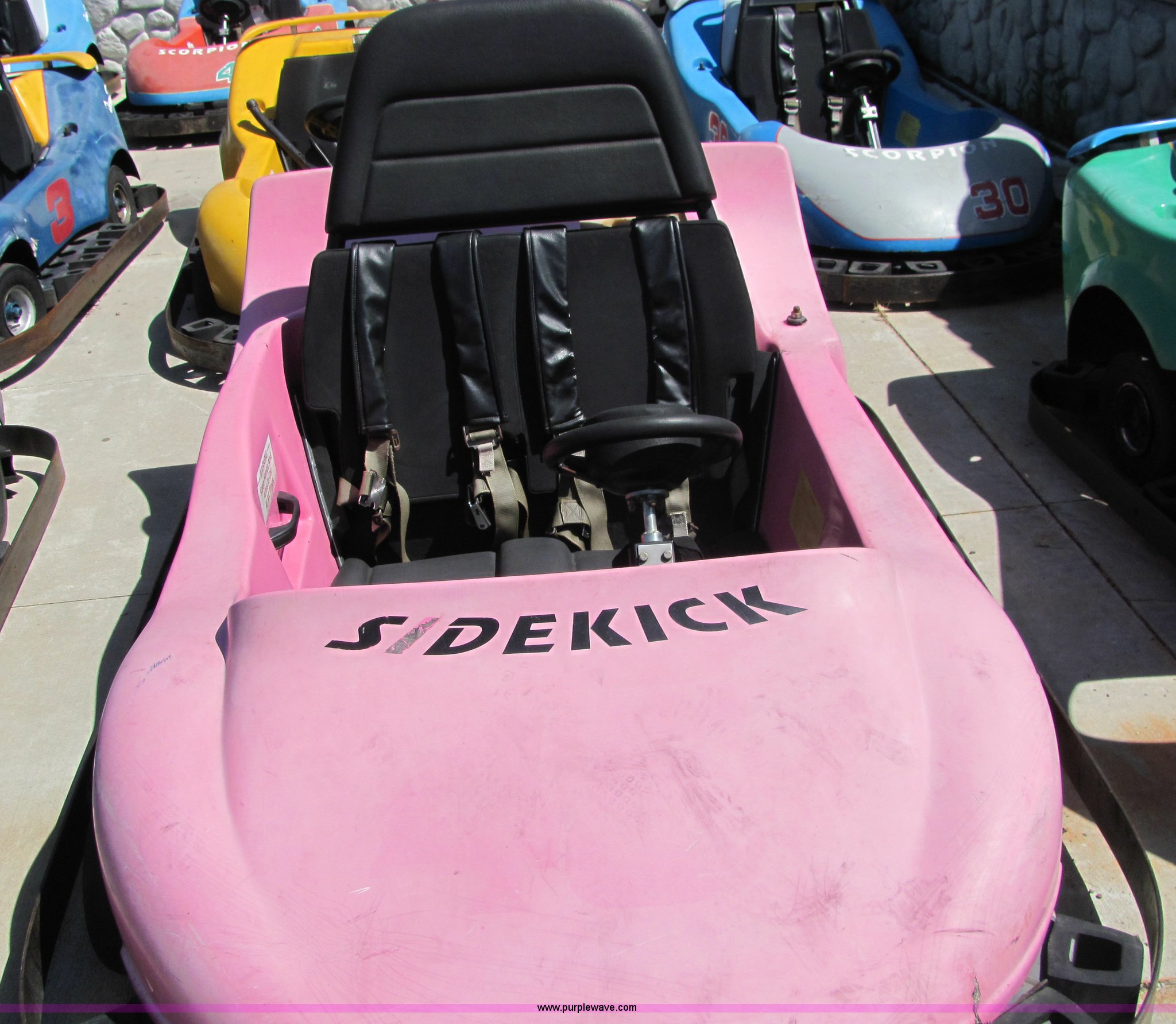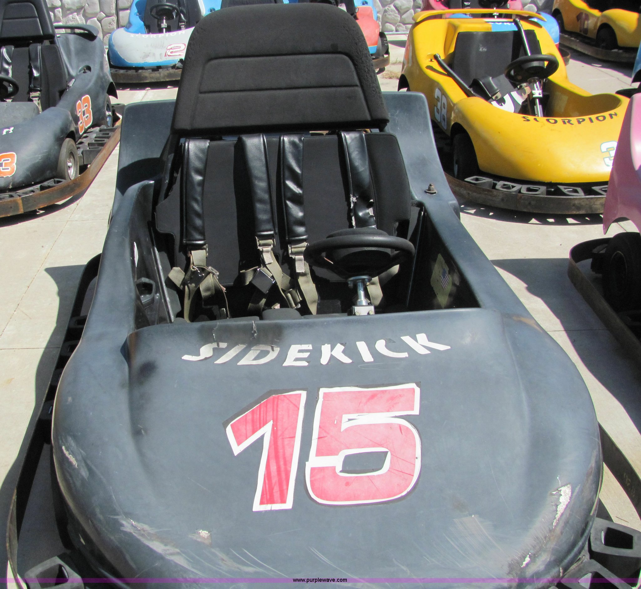 Purple Wave is selling a used ATV in Kansas. This item is a (4) go-kart with the following: Parts carts, (3) Sidekick double passenger karts, Scorpion single passenger, Three contain engines