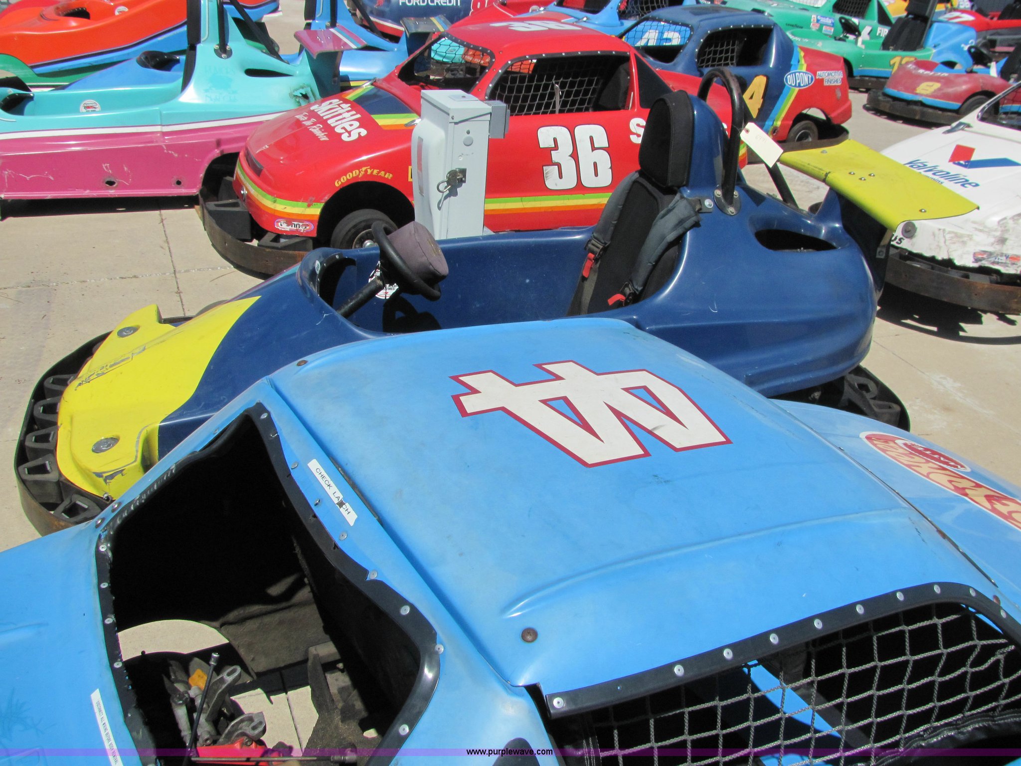Purple Wave is selling a used ATV in Kansas. This item is a (3) go-karts with the following: Parts carts, Two NASCAR style double passenger, Pacer Indy car style single passenger, All three contain engines