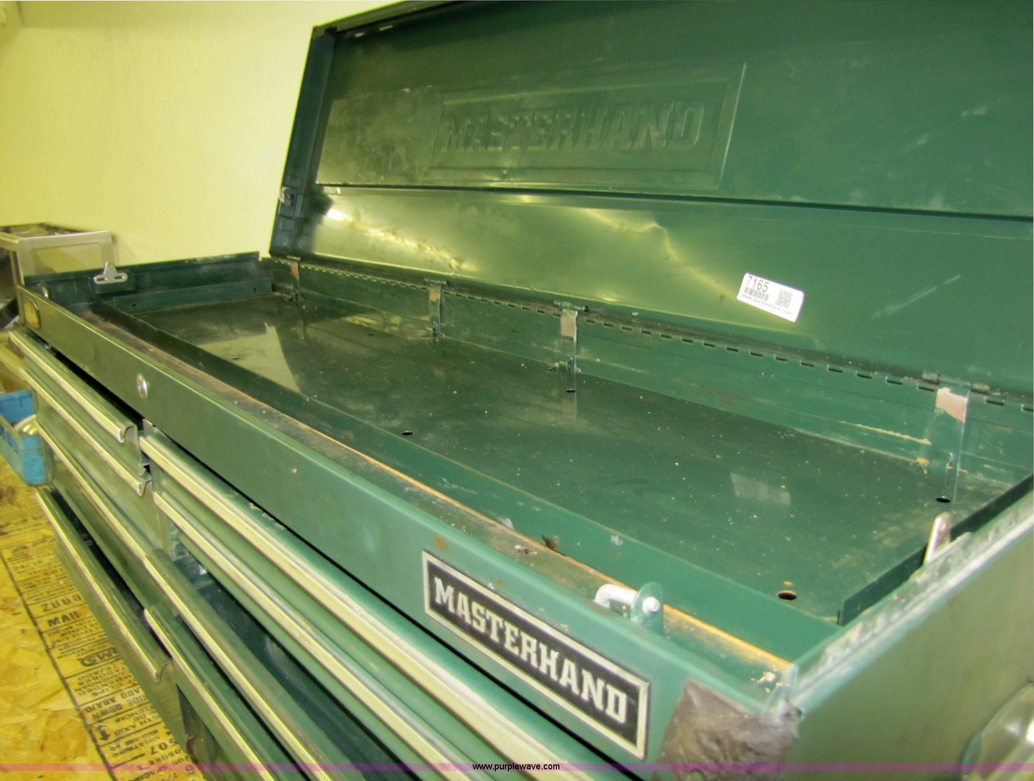 Purple Wave is selling a used Tools in Kansas. This item is a Master Hand tool box with the following: 10 drawer, 52"W x 16"D x 20"H
