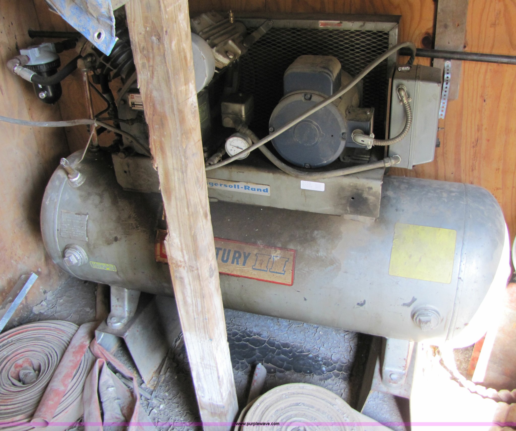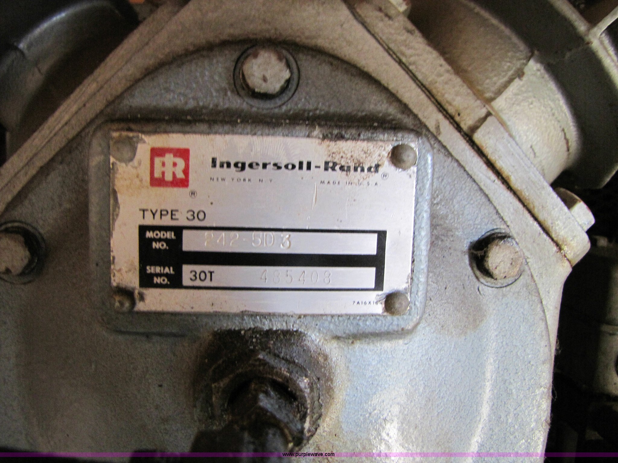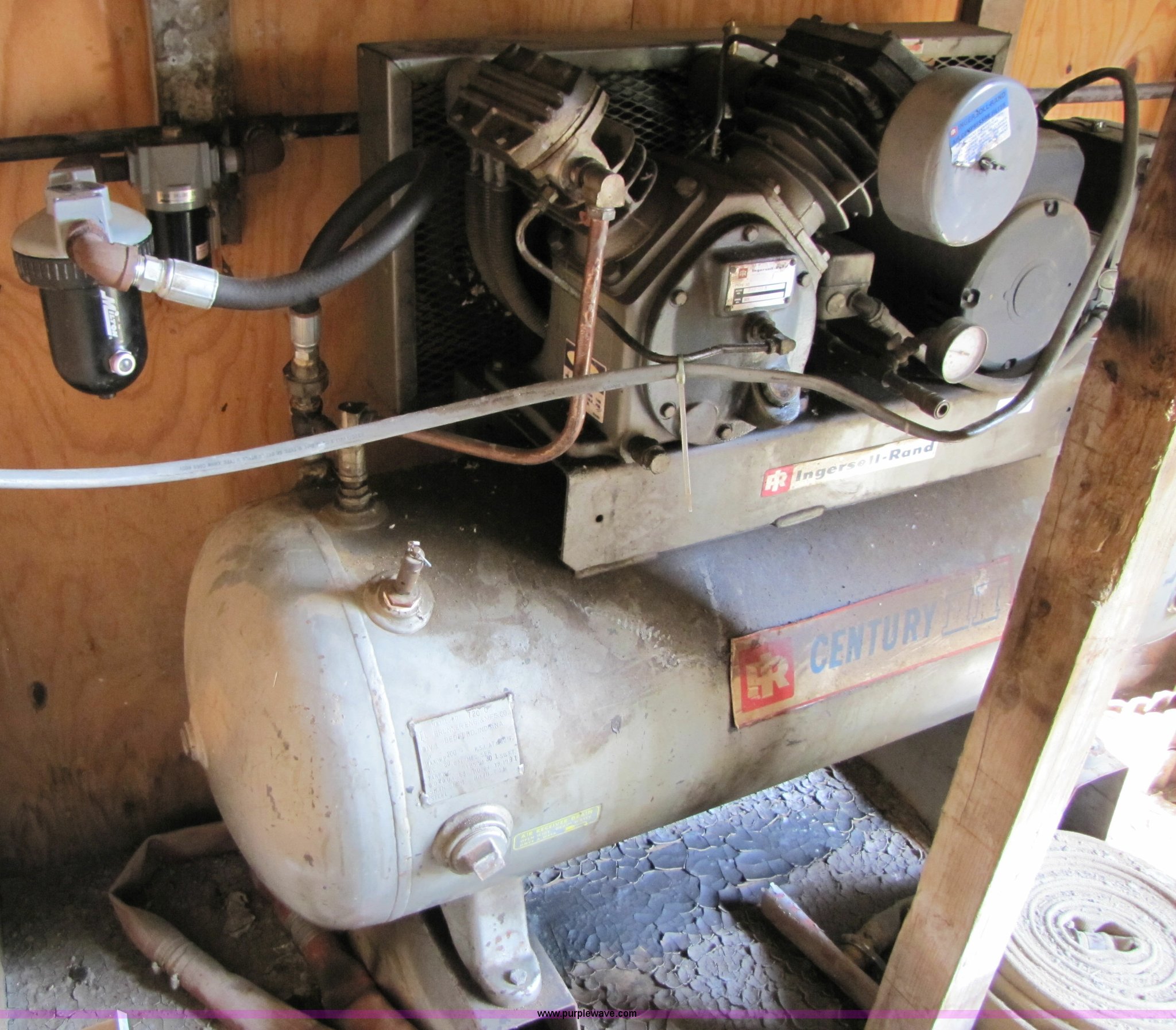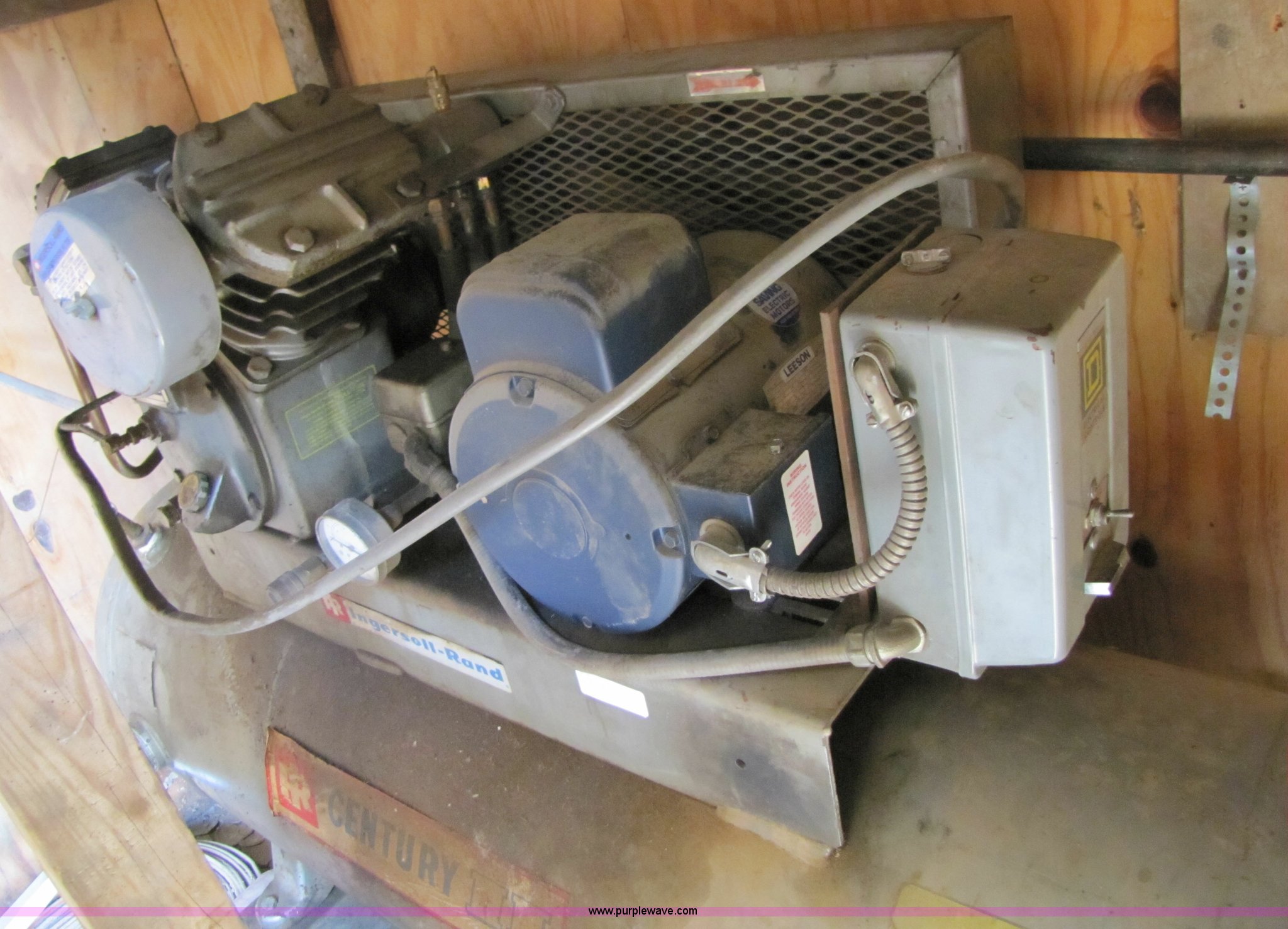 Purple Wave is selling a used Air Compressor in Missouri. This item is a Ingersoll Rand 242-5D3 air compressor with the following: 80 gallon tank, Leeson 5hp electric motor, Single phase, 208-230 volt, 50Hz, Serial 30T 485408