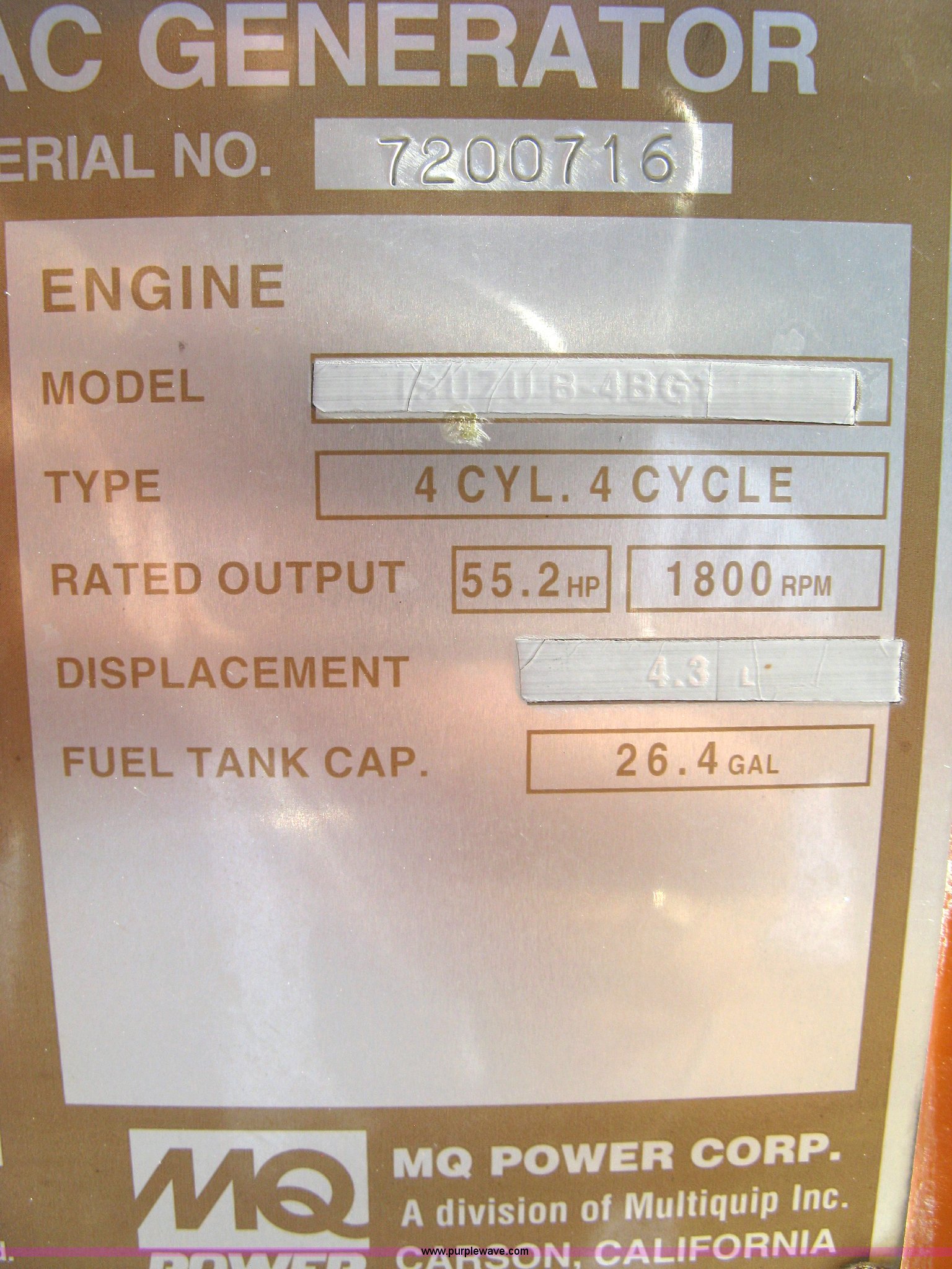 Take a look at this used Multi Quip Whisperwatt MQ Power 45 mobile generator being sold on August 31st, 2010 in the SOLD! August 31 Construction Equipment Internet Only Auction. Take a look at all of the item information below or take a look at similar auctions for Generators and Light Plants.