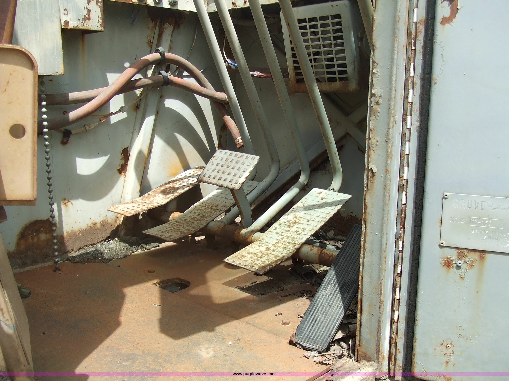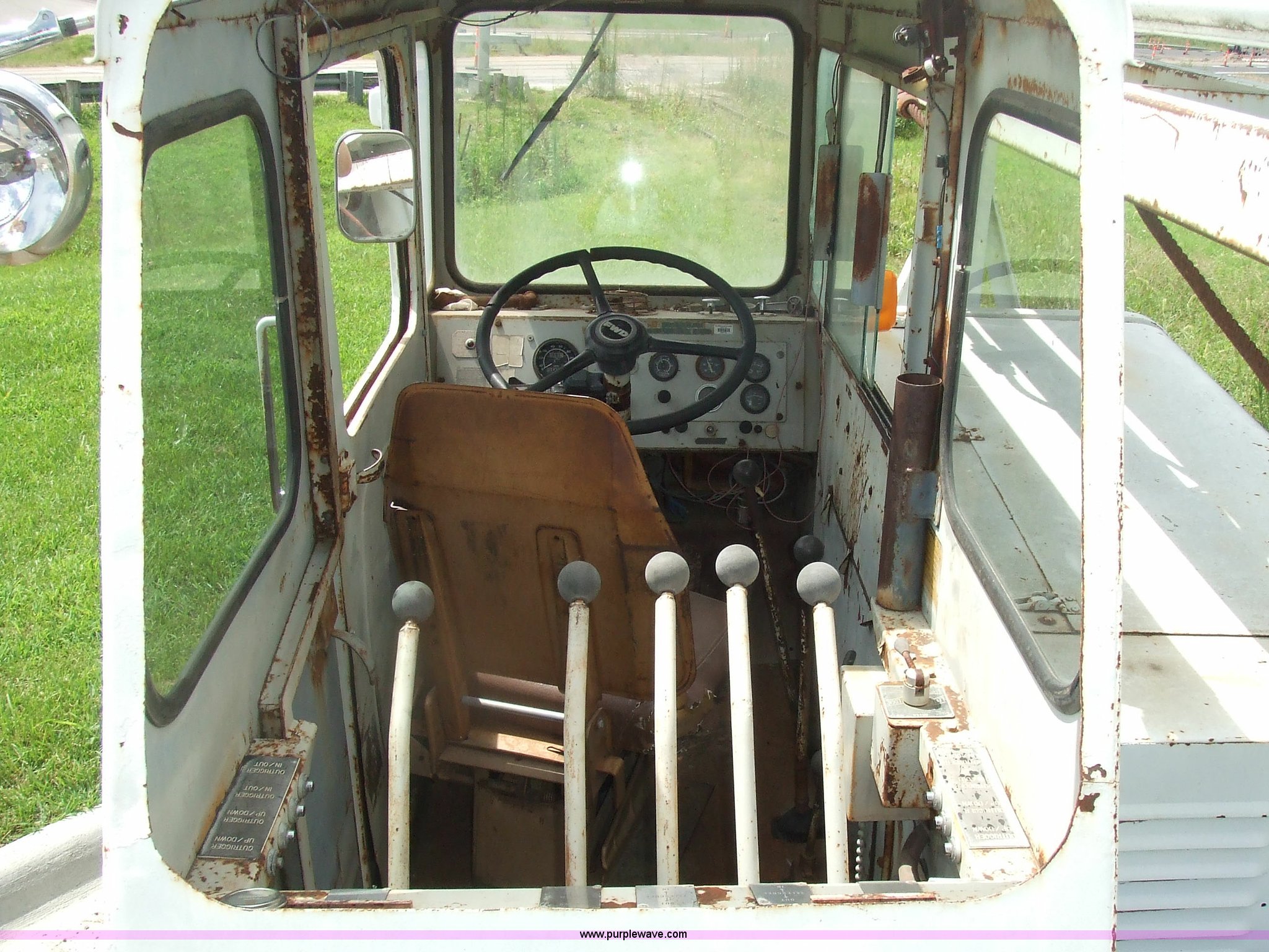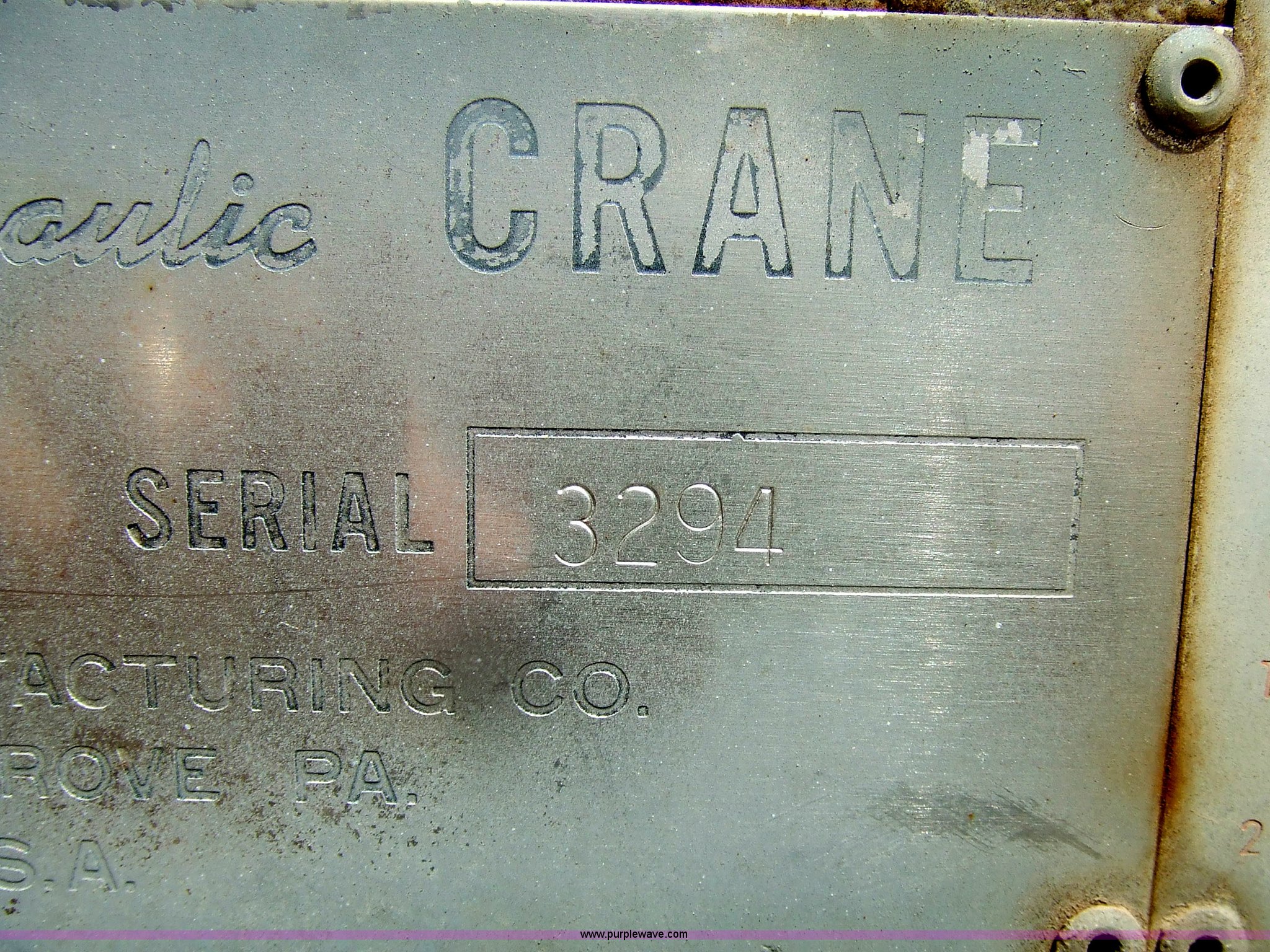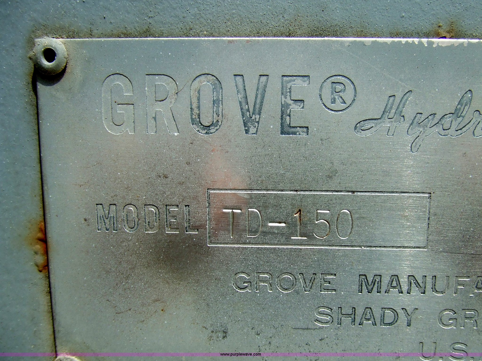 Purple Wave is selling a used Truck Crane in Kansas. This item is a 1968 Grove TD-150 15 ton truck crane with the following: 4717 miles on odometer, 2816.8 hours on truck meter, Six cylinder International gas engine, Four and three axillary transmission, Air brakes, 11.00-20 rear tires, 10.00-20 front tires, Outriggers, 90' boom, 40 gallon fuel tank, Cracked and missing cab glass, Crane engine model 11CV, Serial A114-1454, Interior and exterior cosmetic damage, 26.6'L x 8'W, Serial 3294