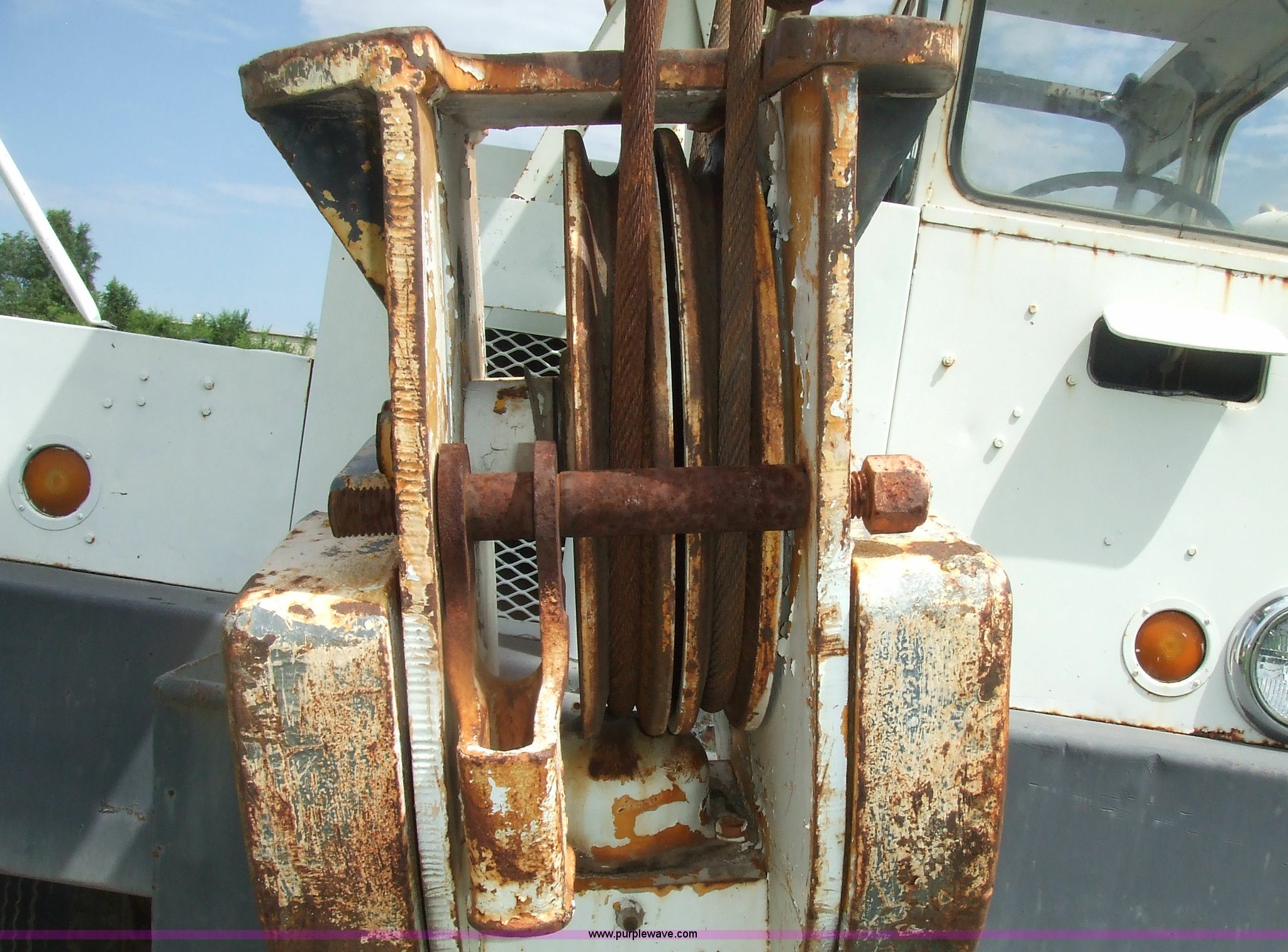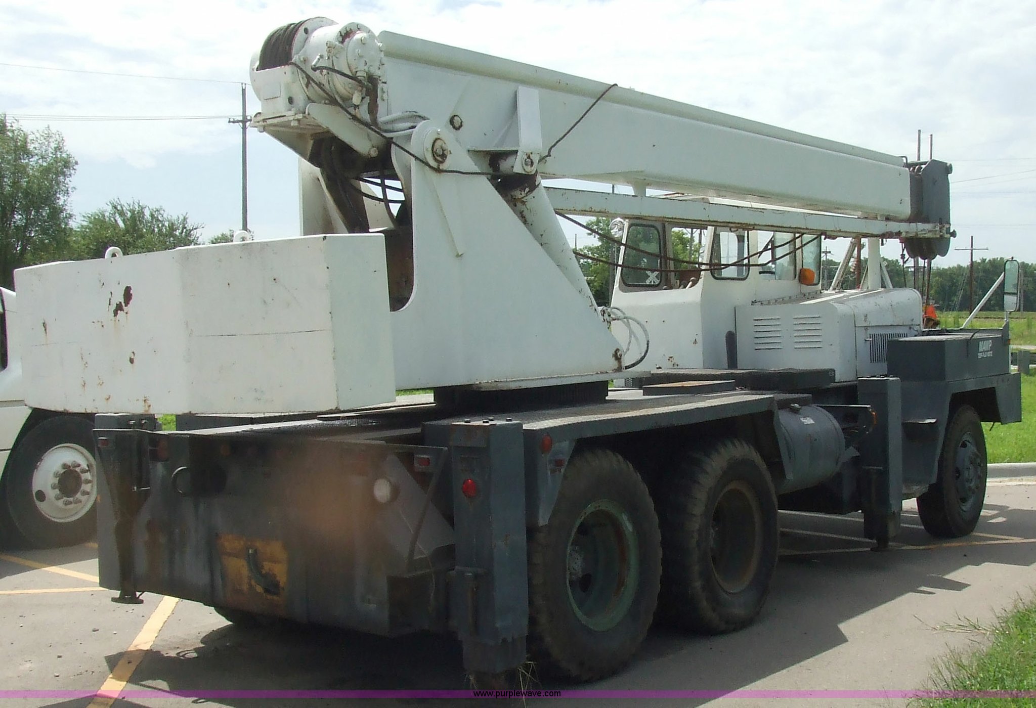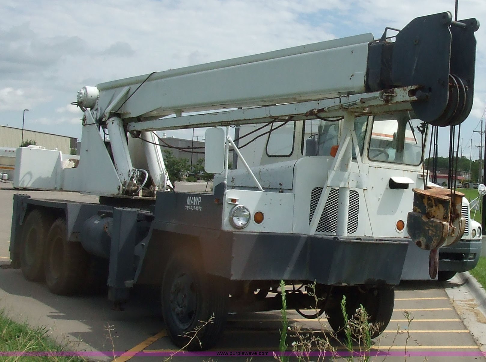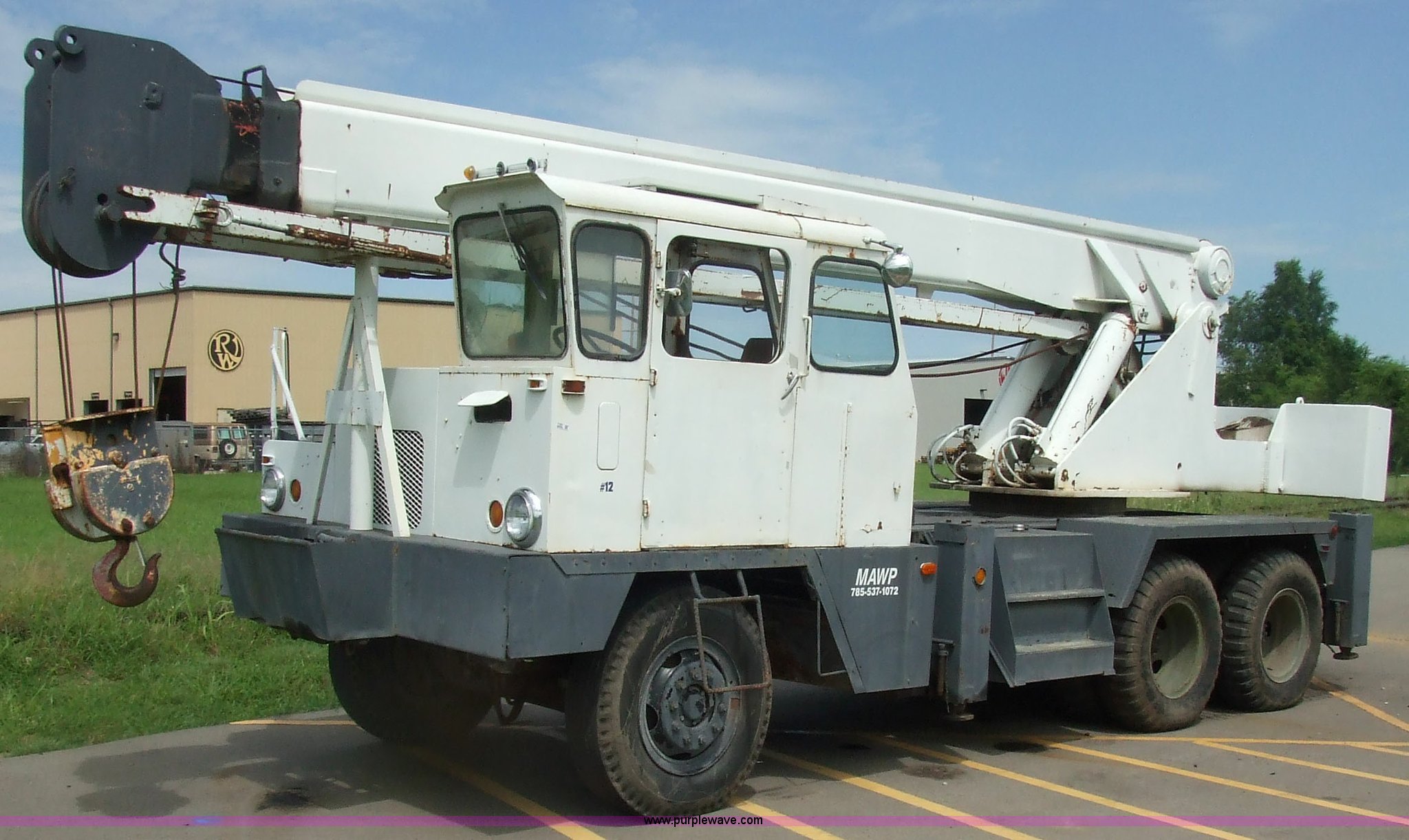 Purple Wave is selling a used Truck Crane in Kansas. This item is a 1968 Grove TD-150 15 ton truck crane with the following: 4717 miles on odometer, 2816.8 hours on truck meter, Six cylinder International gas engine, Four and three axillary transmission, Air brakes, 11.00-20 rear tires, 10.00-20 front tires, Outriggers, 90' boom, 40 gallon fuel tank, Cracked and missing cab glass, Crane engine model 11CV, Serial A114-1454, Interior and exterior cosmetic damage, 26.6'L x 8'W, Serial 3294