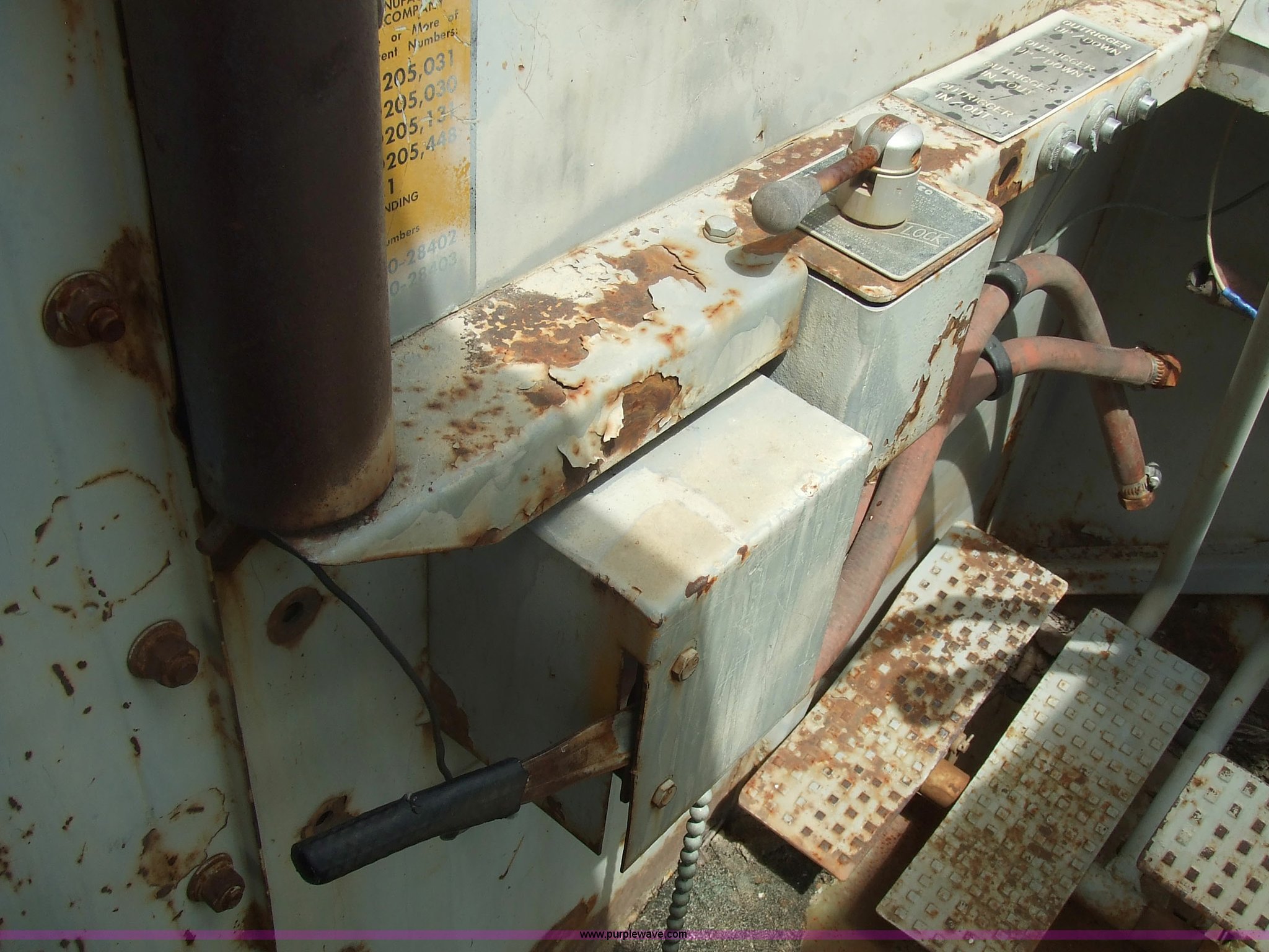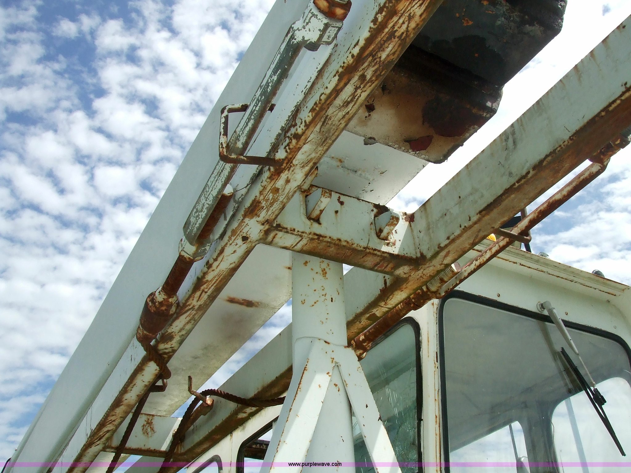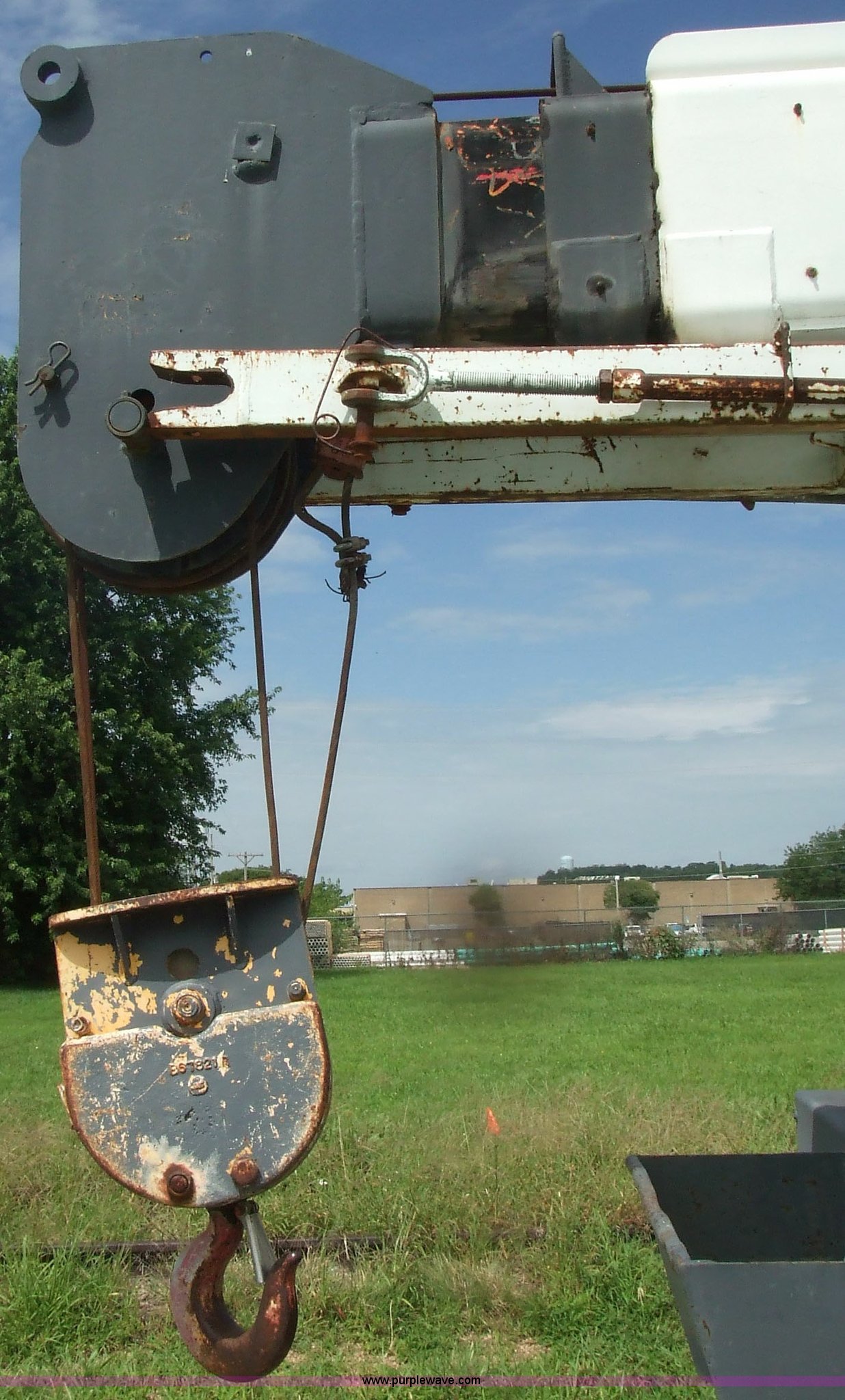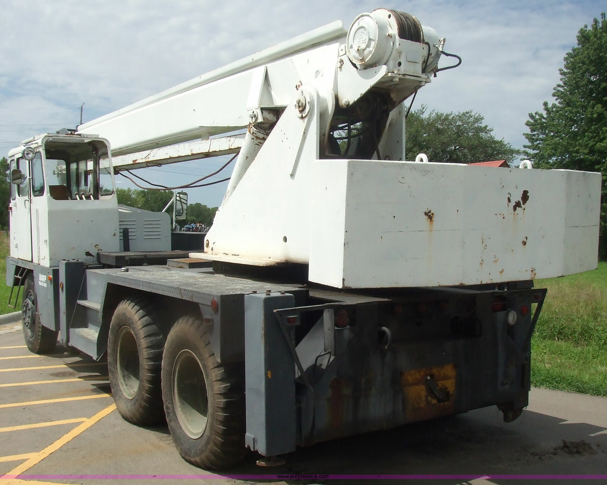 Purple Wave is selling a used Truck Crane in Kansas. This item is a 1968 Grove TD-150 15 ton truck crane with the following: 4717 miles on odometer, 2816.8 hours on truck meter, Six cylinder International gas engine, Four and three axillary transmission, Air brakes, 11.00-20 rear tires, 10.00-20 front tires, Outriggers, 90' boom, 40 gallon fuel tank, Cracked and missing cab glass, Crane engine model 11CV, Serial A114-1454, Interior and exterior cosmetic damage, 26.6'L x 8'W, Serial 3294