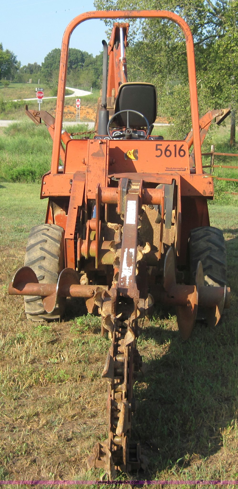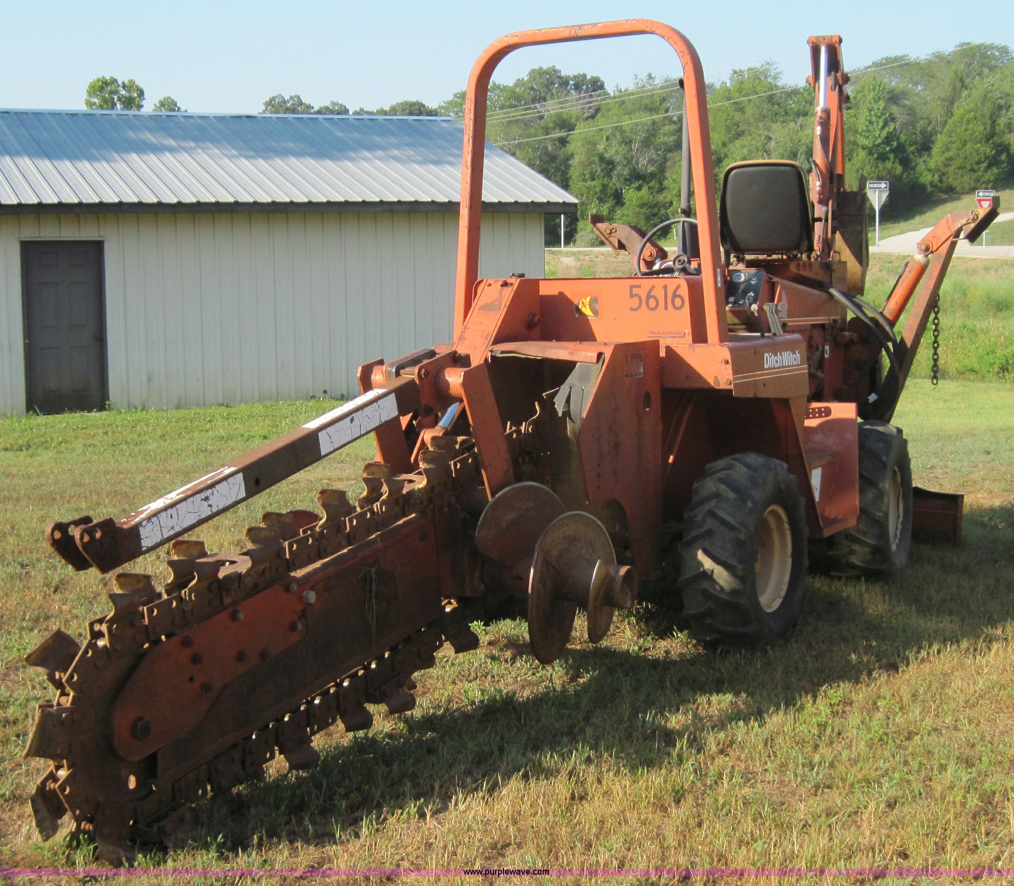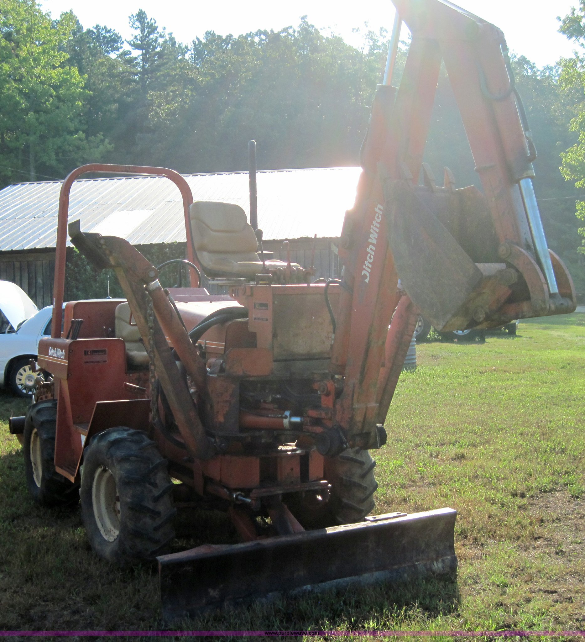 Purple Wave is selling a used Trencher or Rock Saw in Missouri. This item is a Ditch Witch 4010 trencher with backhoe with the following: 741 hours on meter, Three cylinder diesel engine, Four speed transmission, 6' digging depth, Six way blade, 12.5L-15 tires, Serial BD0114